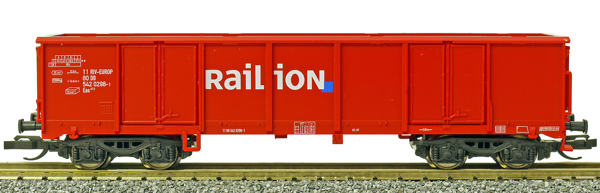 | vysokostěnný nákladní vůz červený „Railion“ |