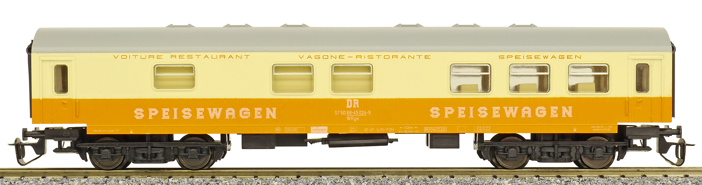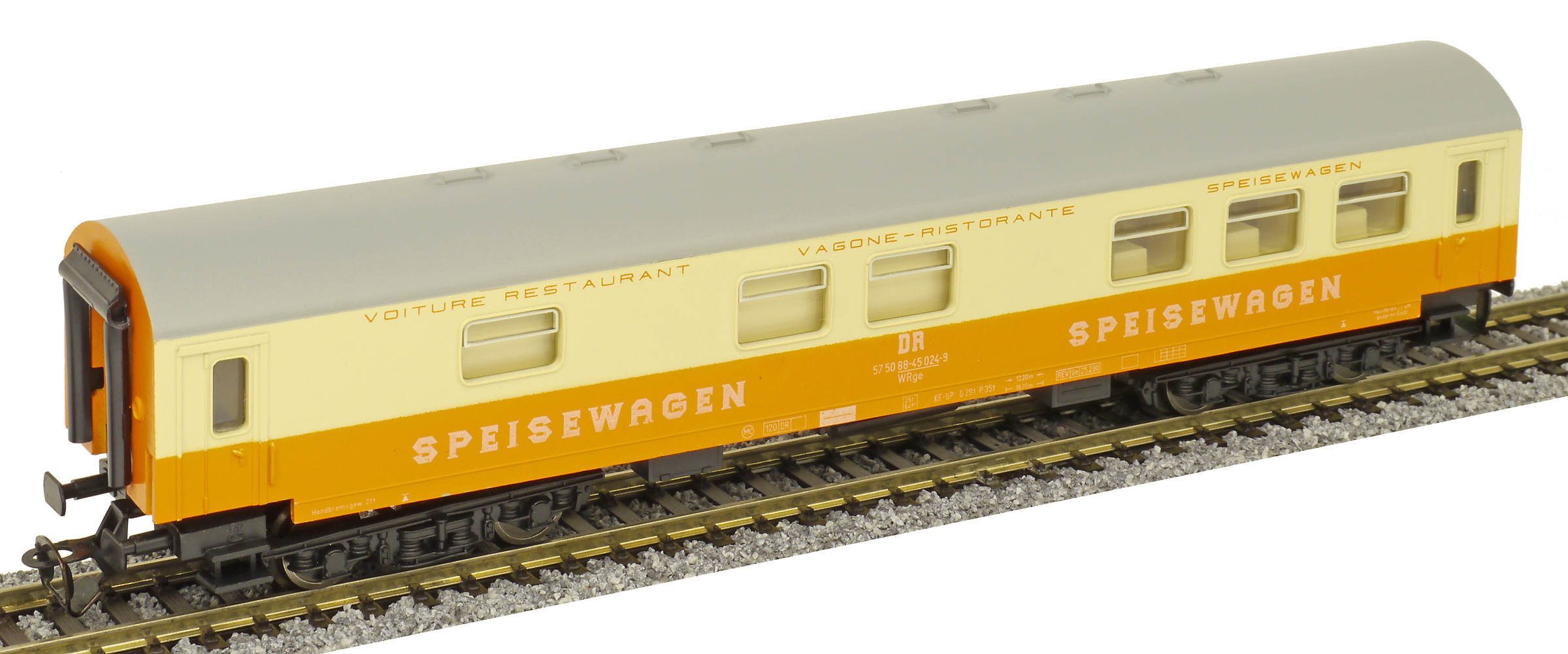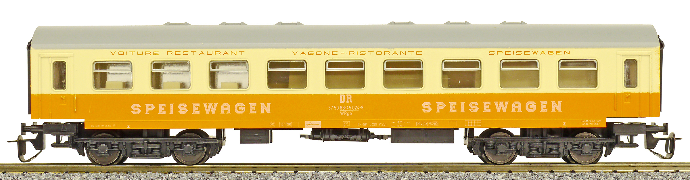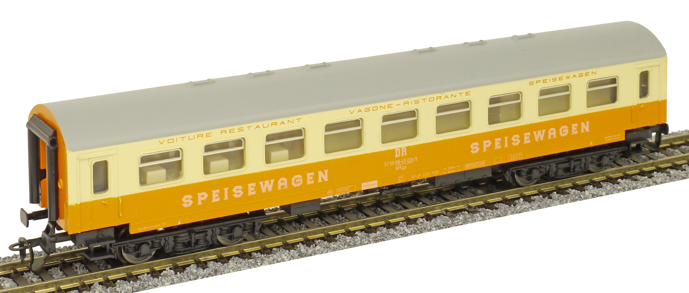 | jídelní vůz oranžový-slonová kost s šedou střechou „MITROPA“ |