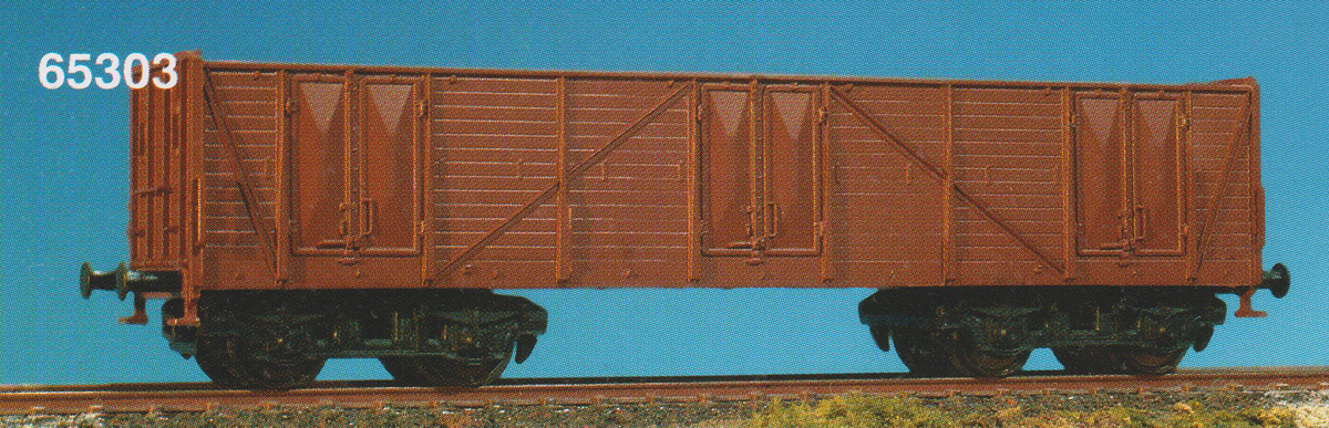vysokostěnný nákladní vůz červenohnědý, černý rám a podvozky
