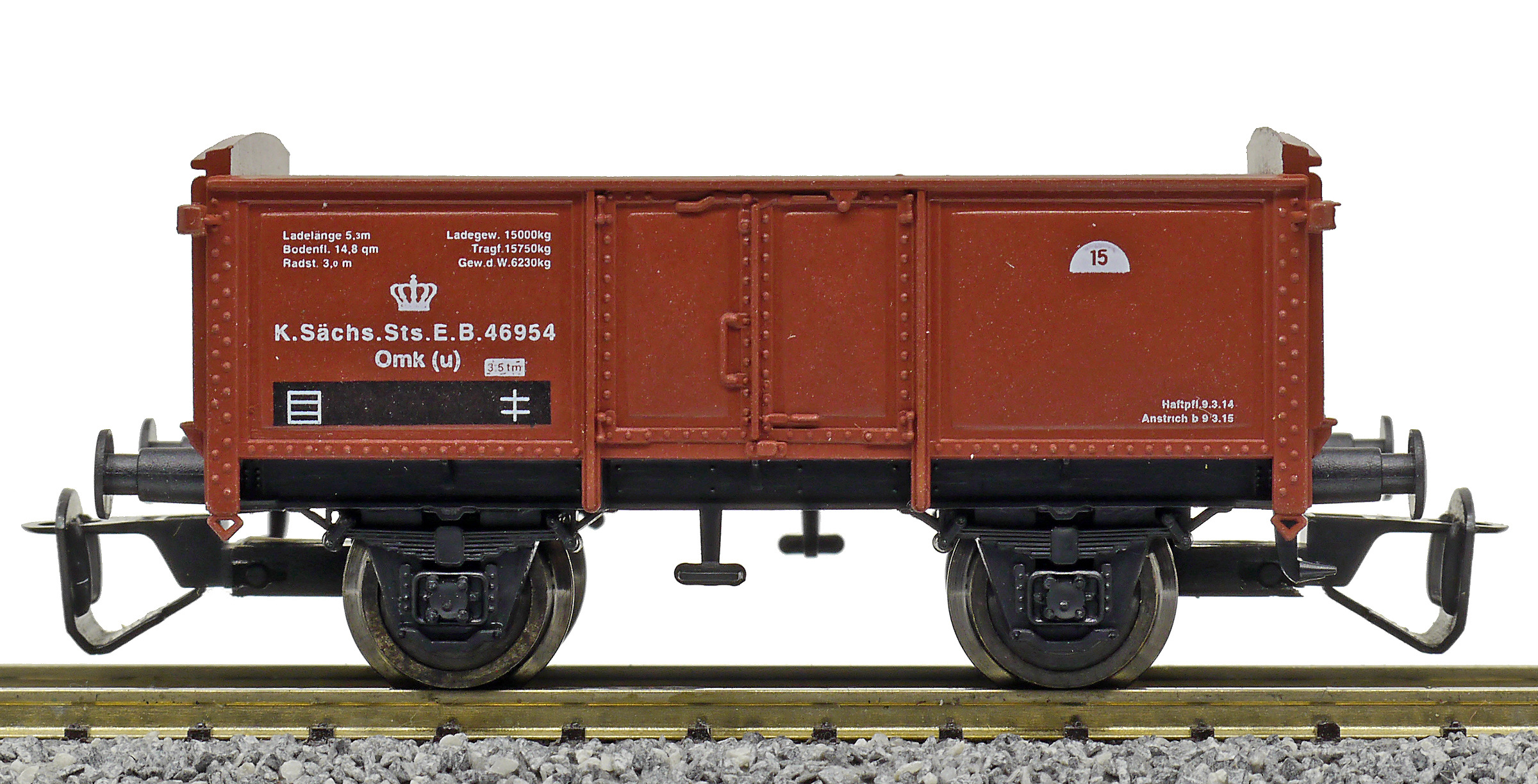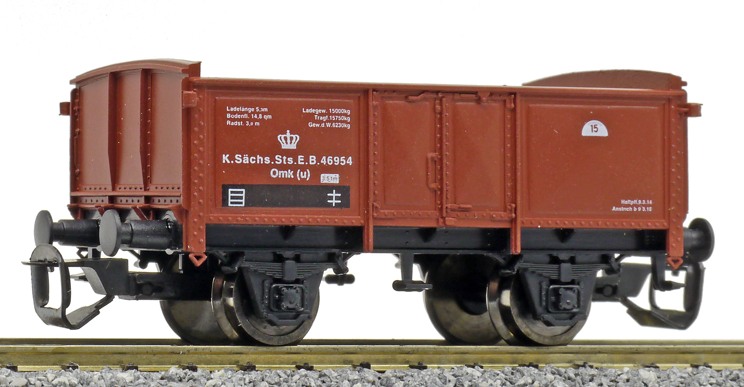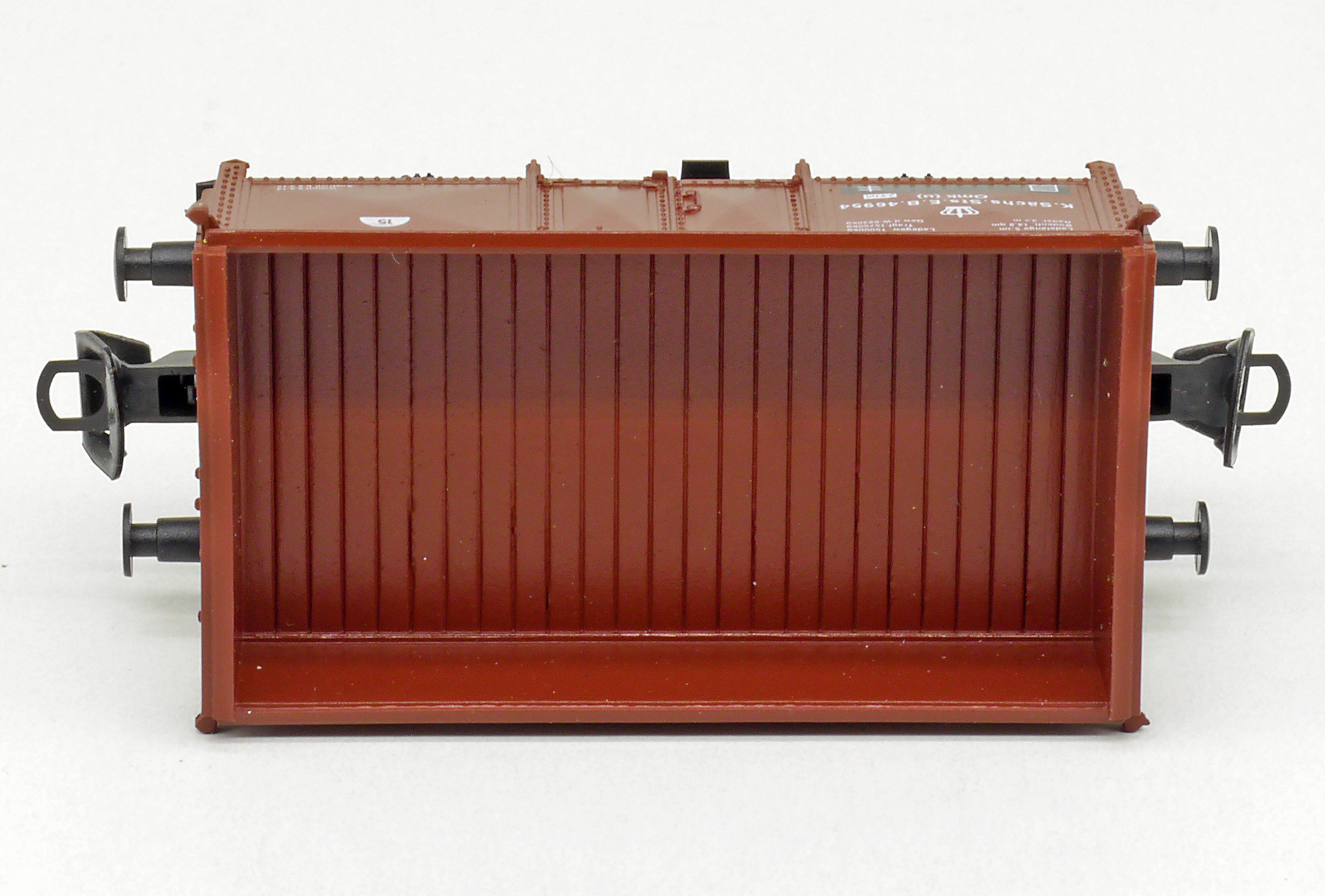 | otevřený nákladní vůz červenohnědý, černý pojezd |