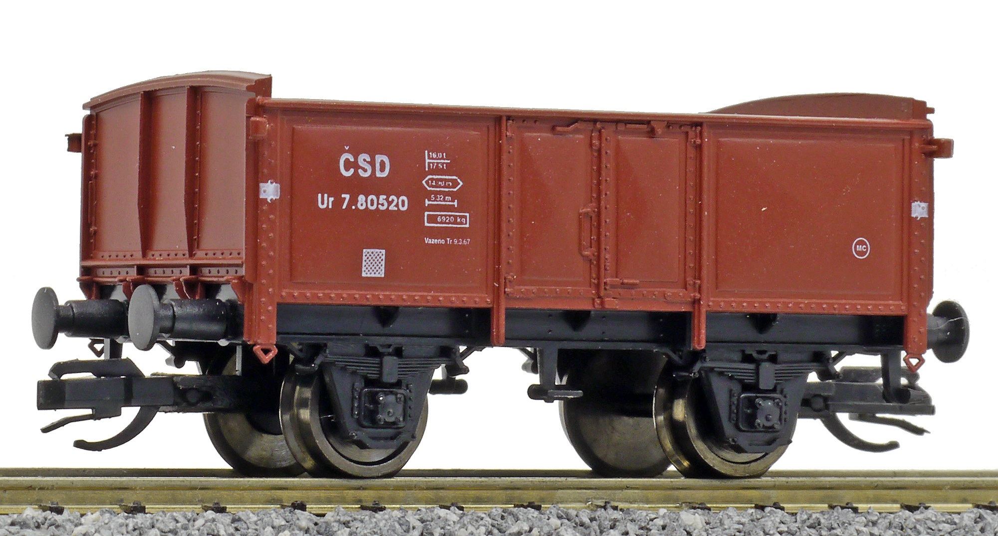 měřítko 1:120 - rozchod kolejí 12 mm kinematika krátkého spřáhla (KKK) podle normy NEM 358 55 mm - celková délka modelu přes nárazníky 2 - celkový počet náprav nebo rozložení náprav 16 g - hmotnost brutto - model včetně prodejního obalu 10 g - hmotnost netto - pouze model