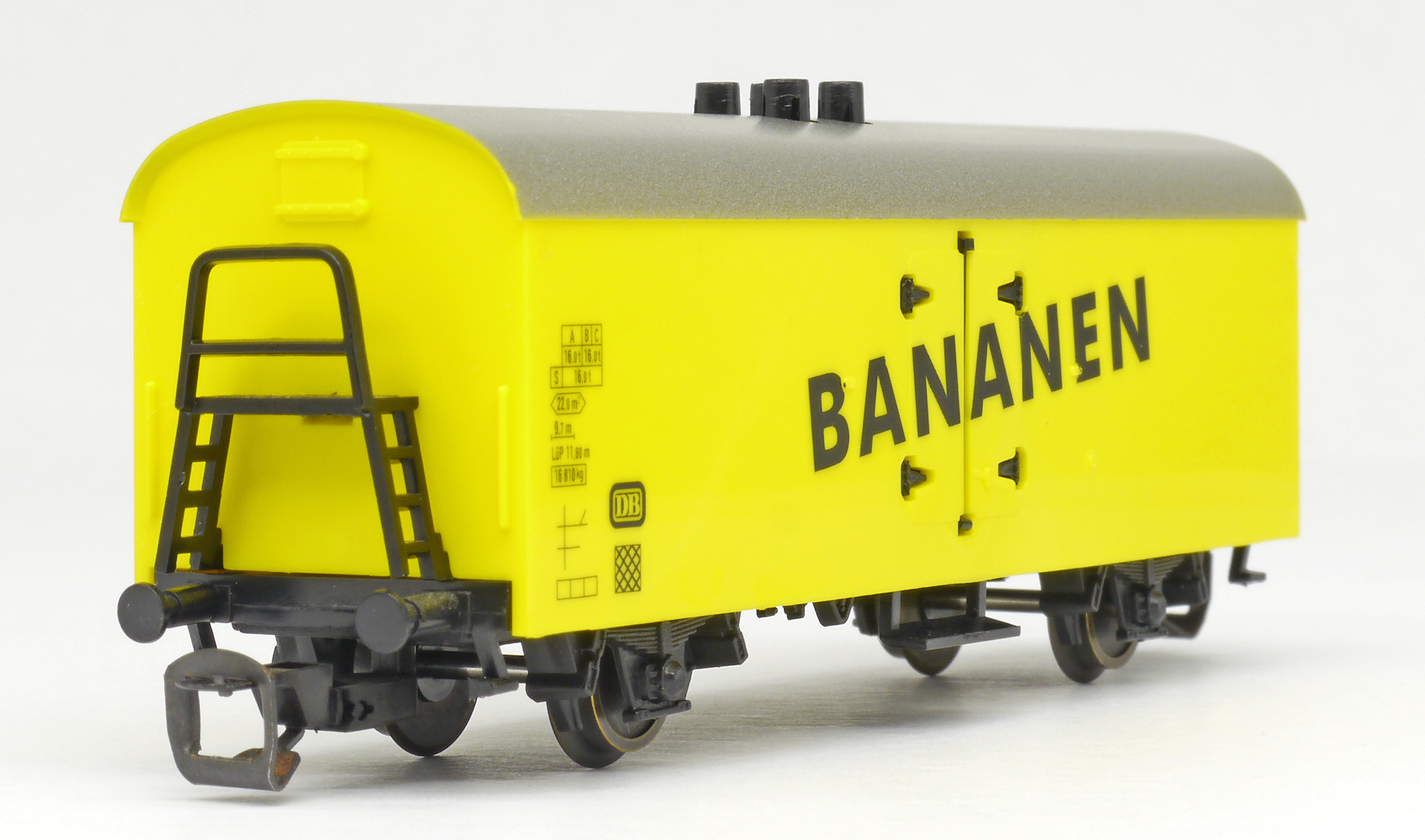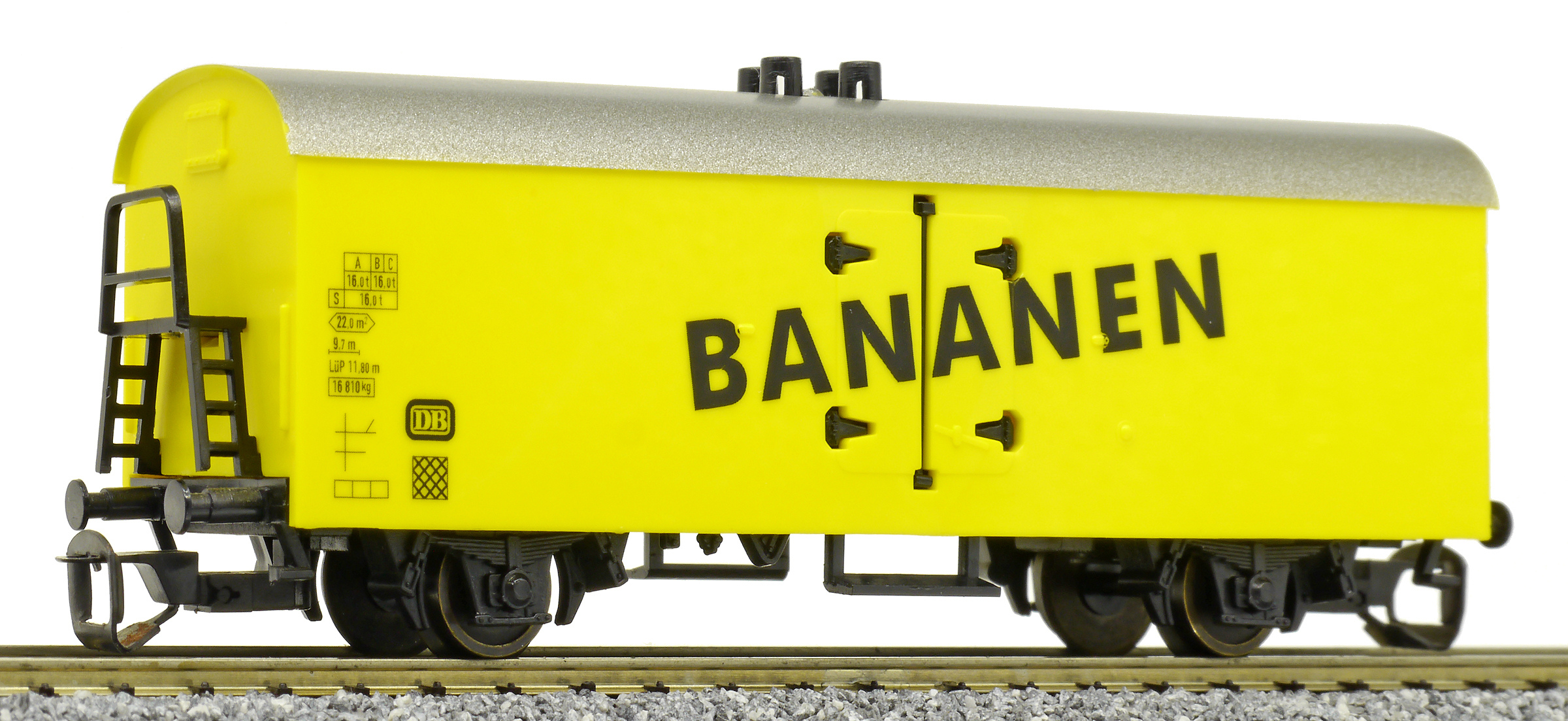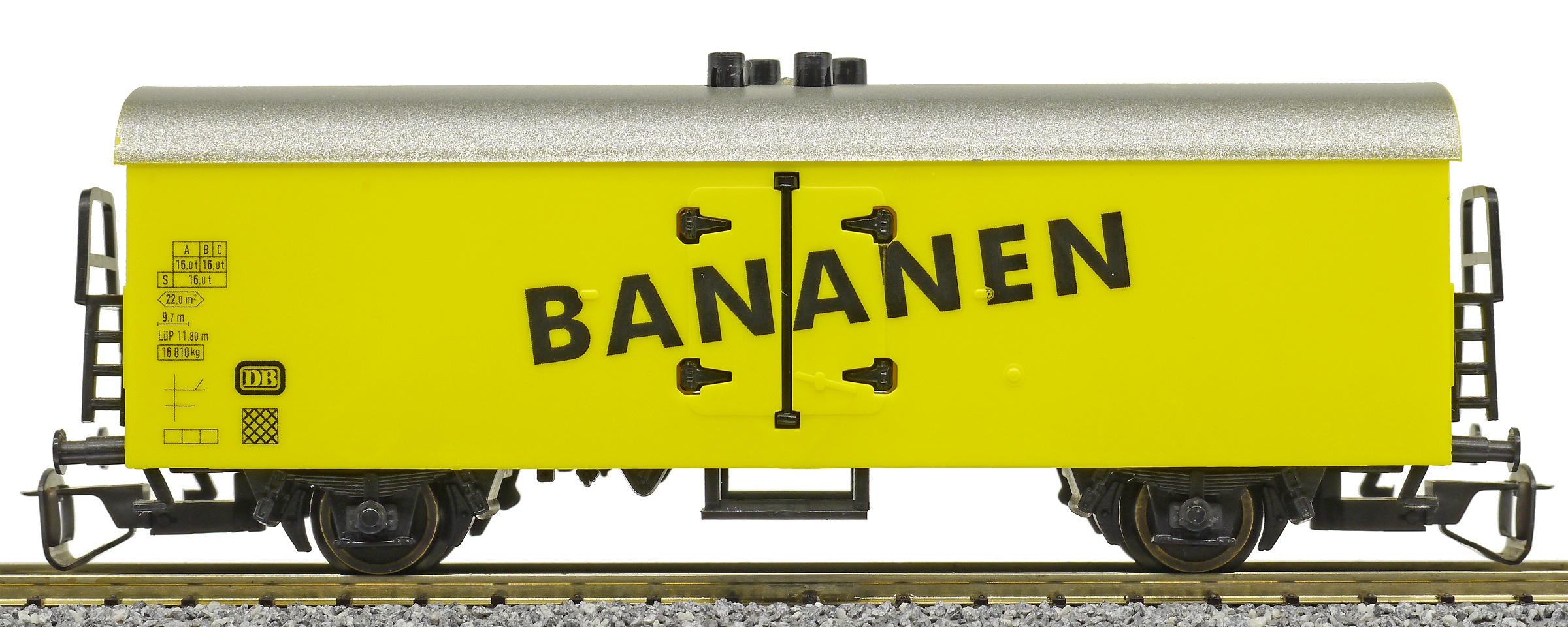nákladní chladící vůz žlutý s šedou střechou „BANANEN“
