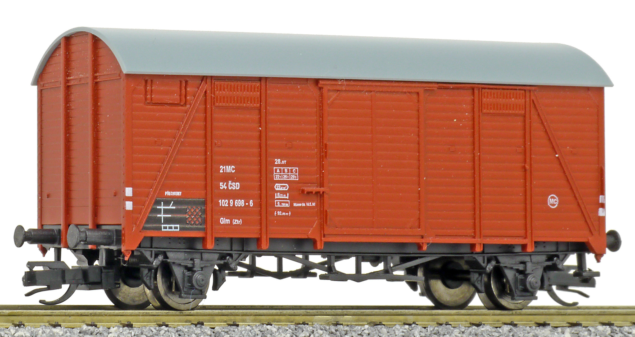 | • 21 54 102 9 698-6 | → | nákladní, nezávislé nápravy, pevný rozchod, ve vlastnictví železniční správy, RIV, PPV |