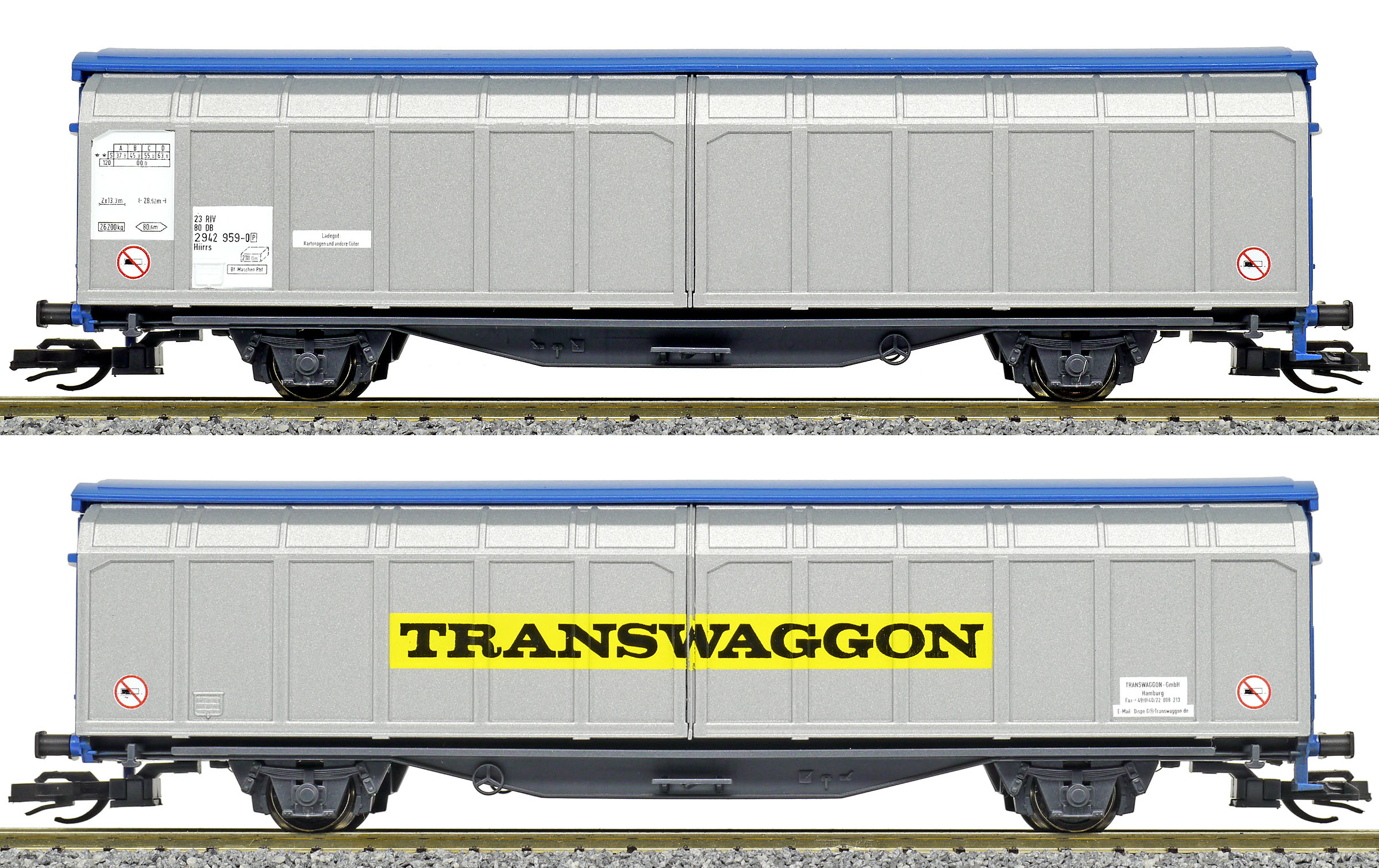 | set dvou vozů s posuvnými bočnicemi „Transwaggon“ |
