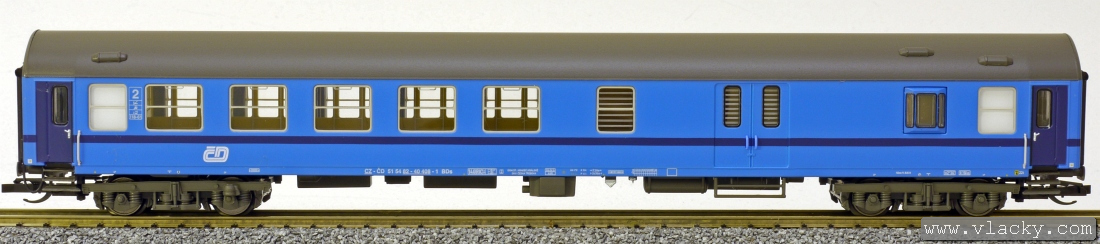 | rychlíkový vůz modrý s šedou střechou 2. tř., zavazadlový oddíl |