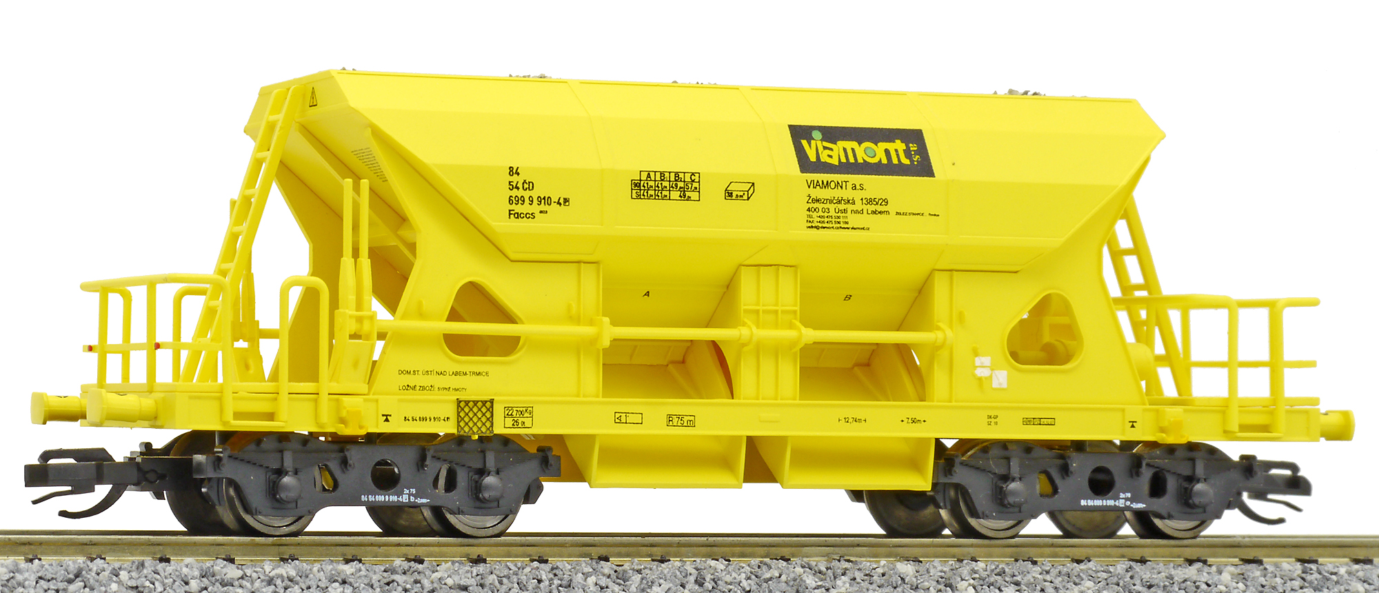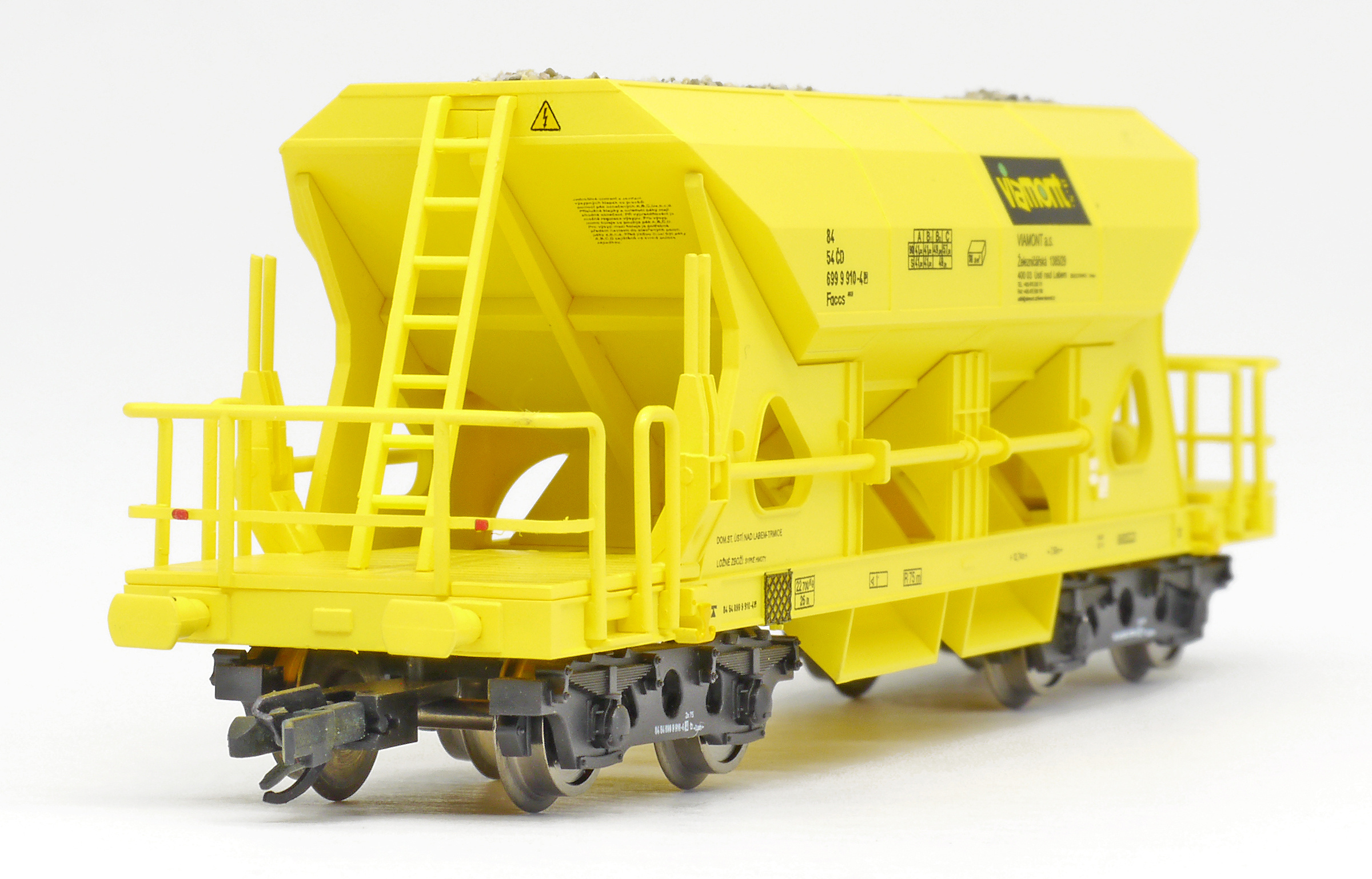 | nákladní samovýsypný vůz žlutý s nákladem štěrku „Viamont“ |