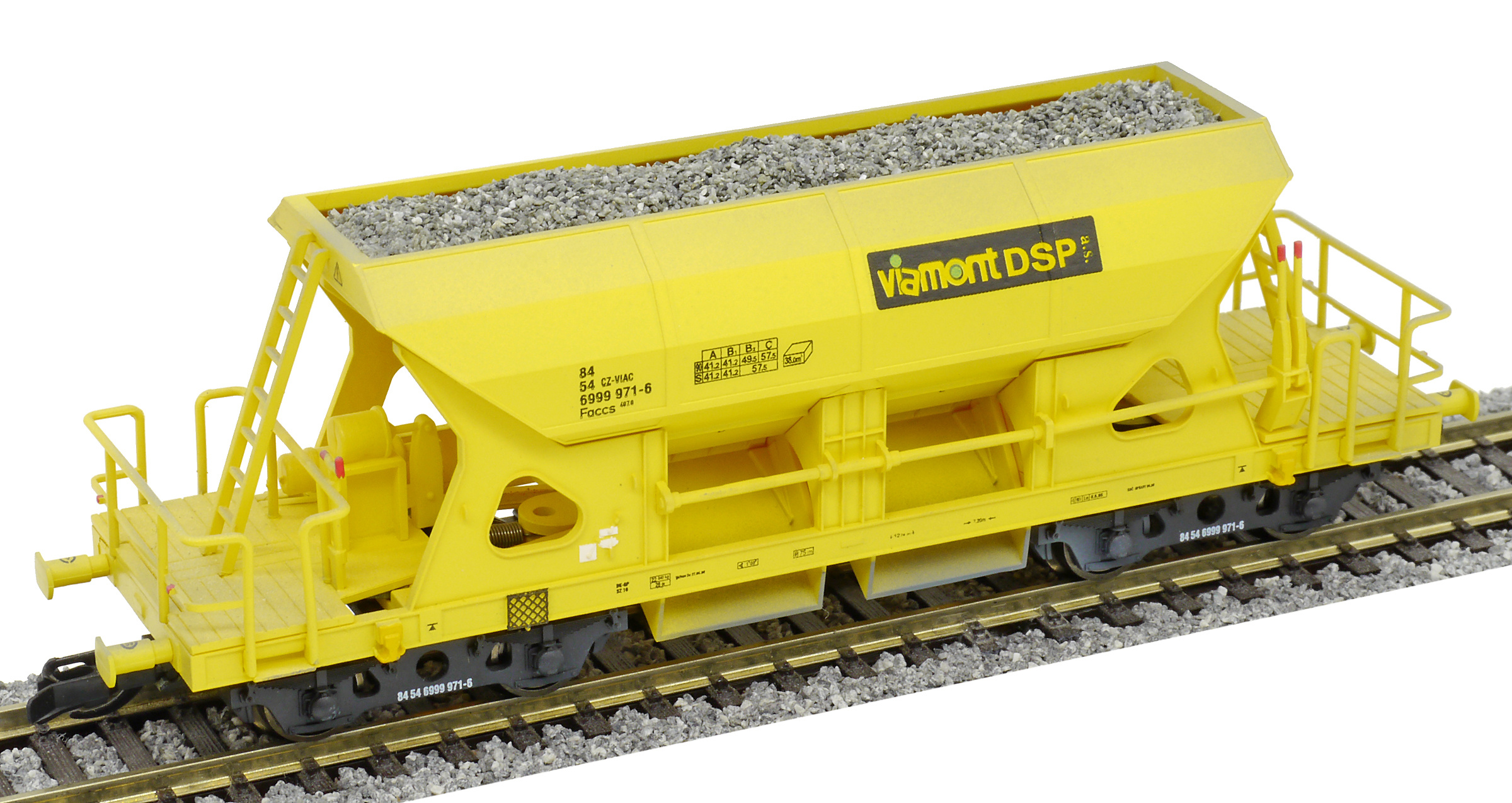 | nákladní samovýsypný vůz žlutý s nákladem štěrku „Viamont“ |