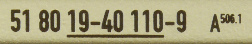 Číslo    51 80 19-40 110-9  Kontrolní číslice je v pořádku  Toto číslo vozu je použito na jiném modelu Tovární číslo