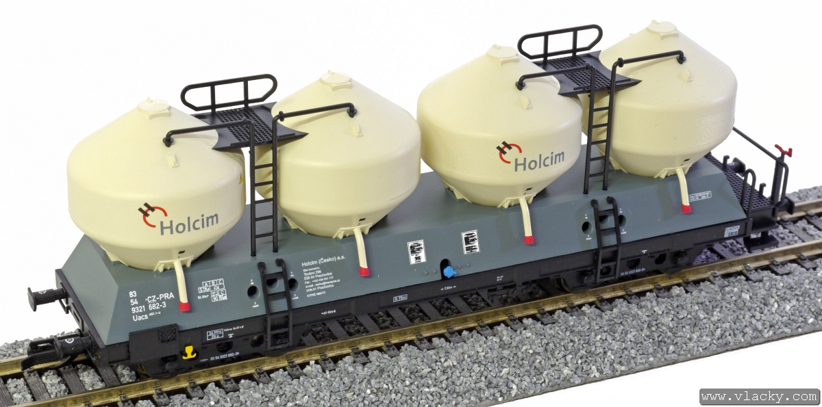 | nákladní samovýsypný vůz šedý s nádobami „Holcim“ |