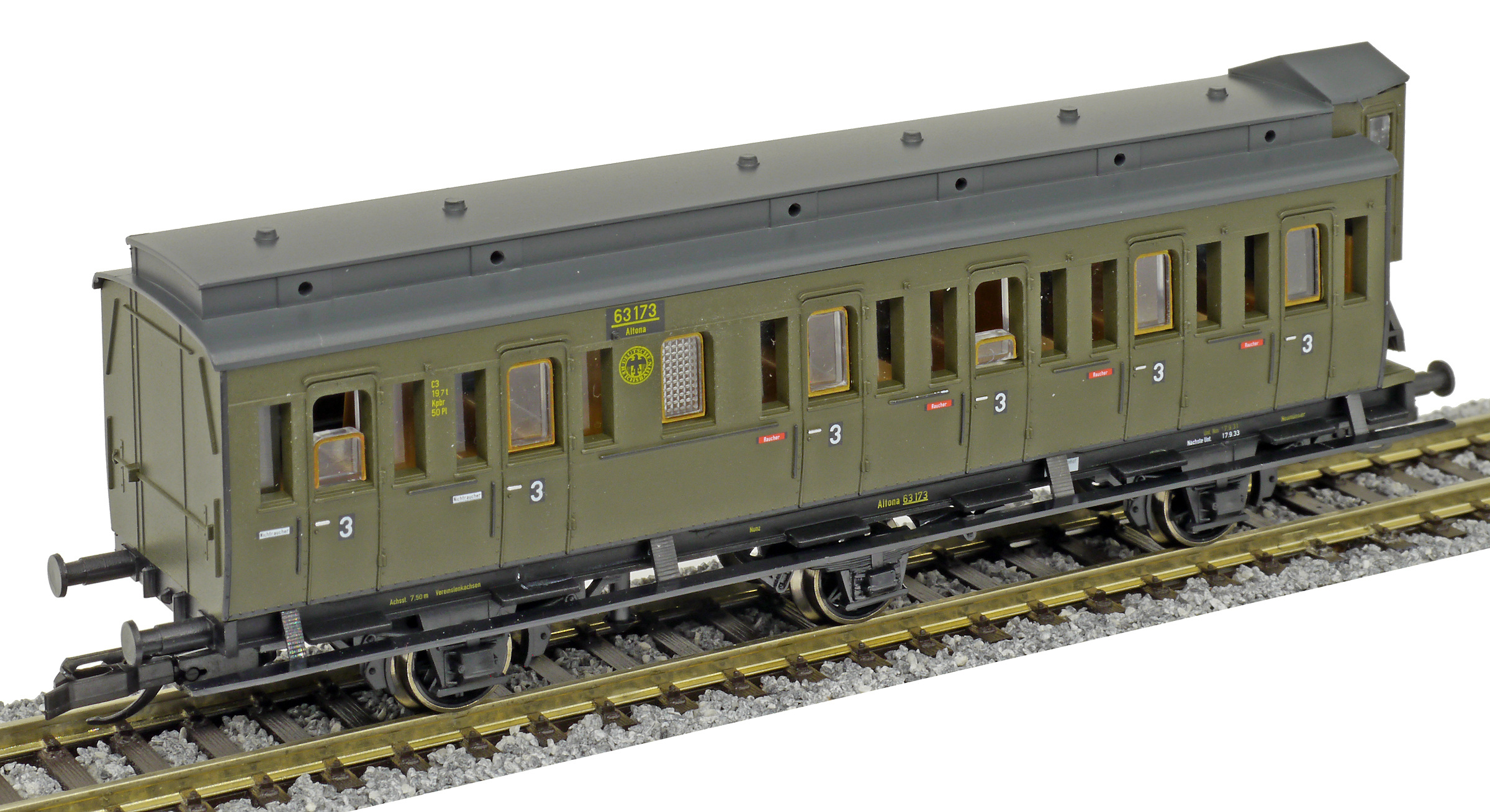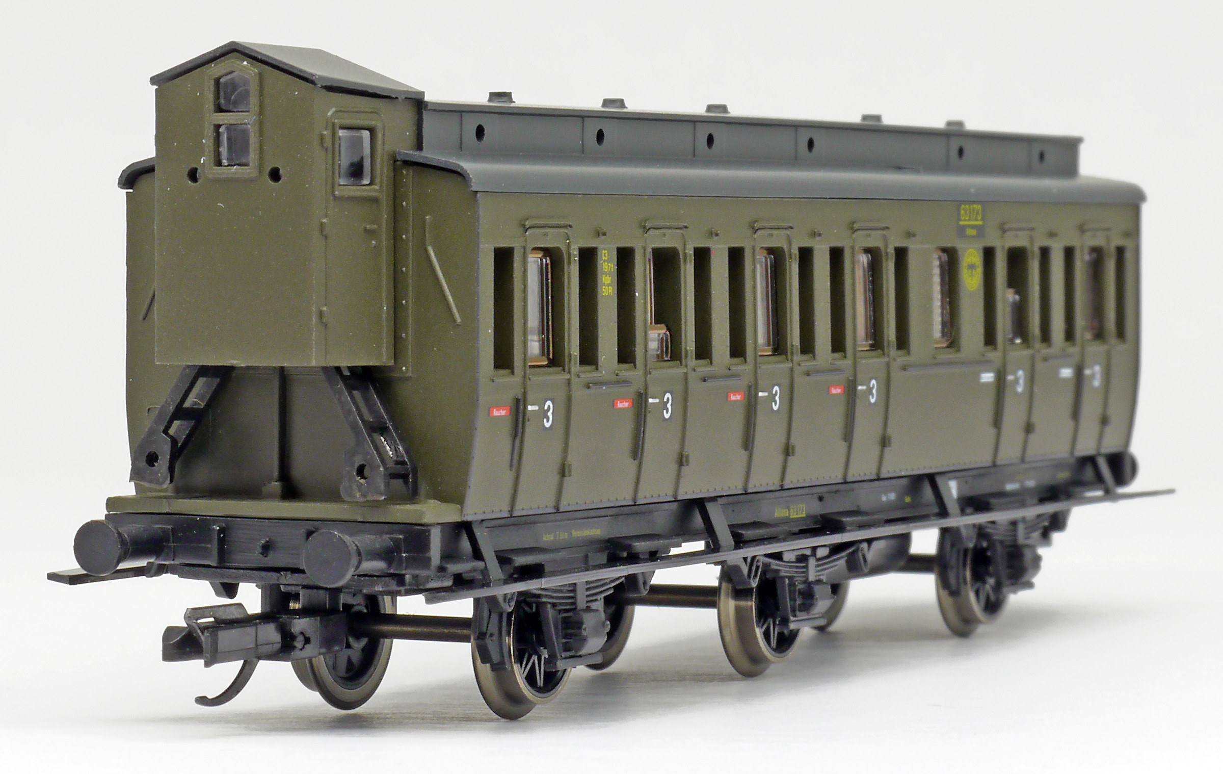 | oddílový osobní vůz tmavě zelený s černou střechou 3. tř. |