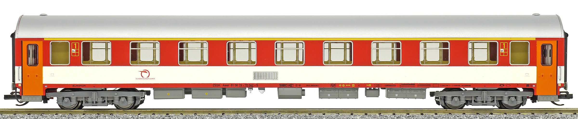 | rychlíkový vůz červený-bílý s šedou střechou 1. tř. |
