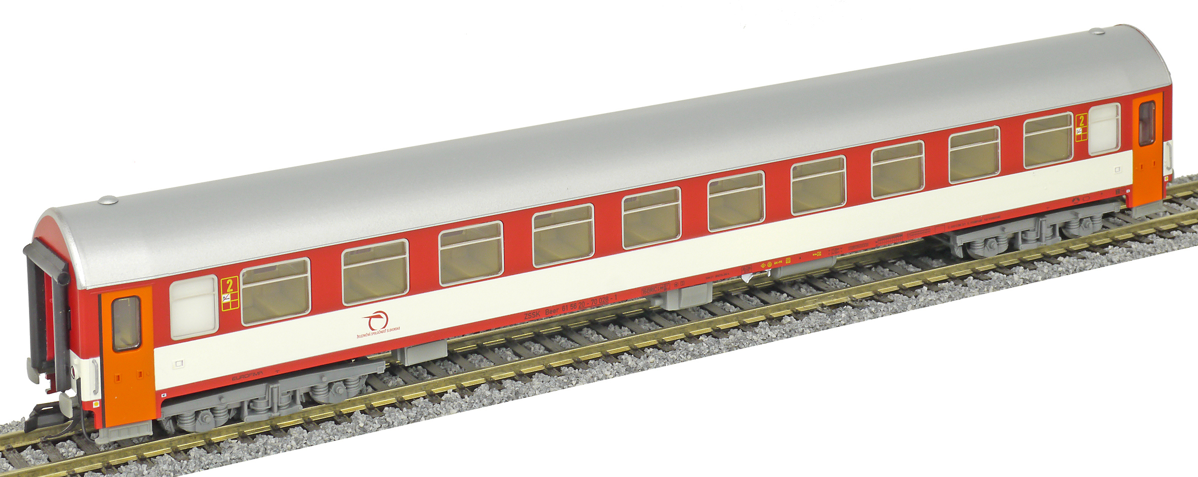 | rychlíkový vůz červený-bílý s šedou střechou 2. tř. |