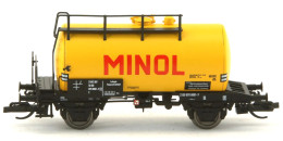 | set tří žlutých kotlových vozů s logem „MINOL“ |