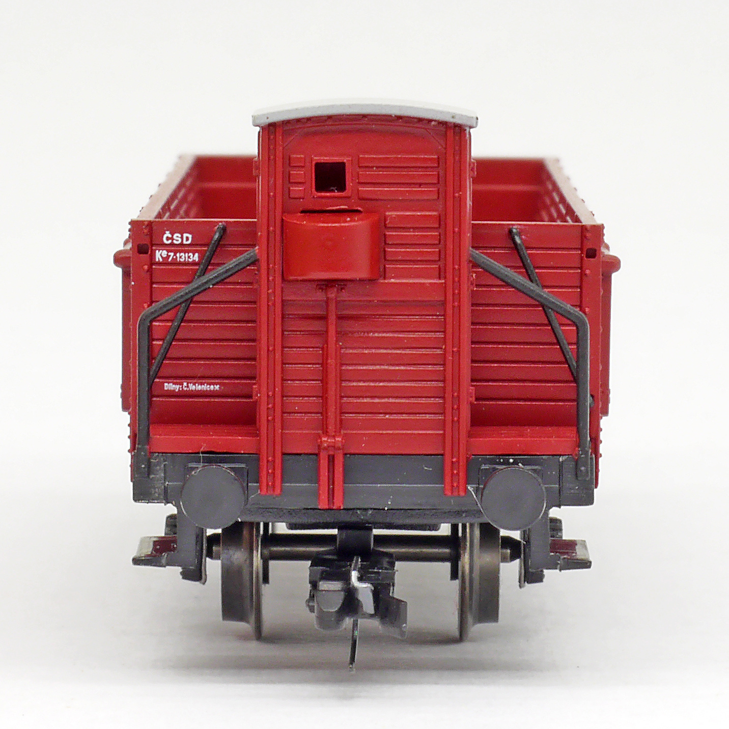 otevřený nákladní vůz červenohnědý s brzdařskou budkou