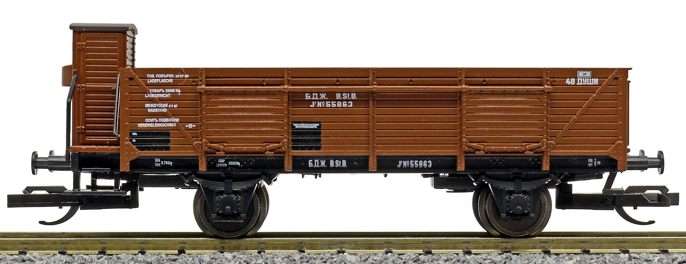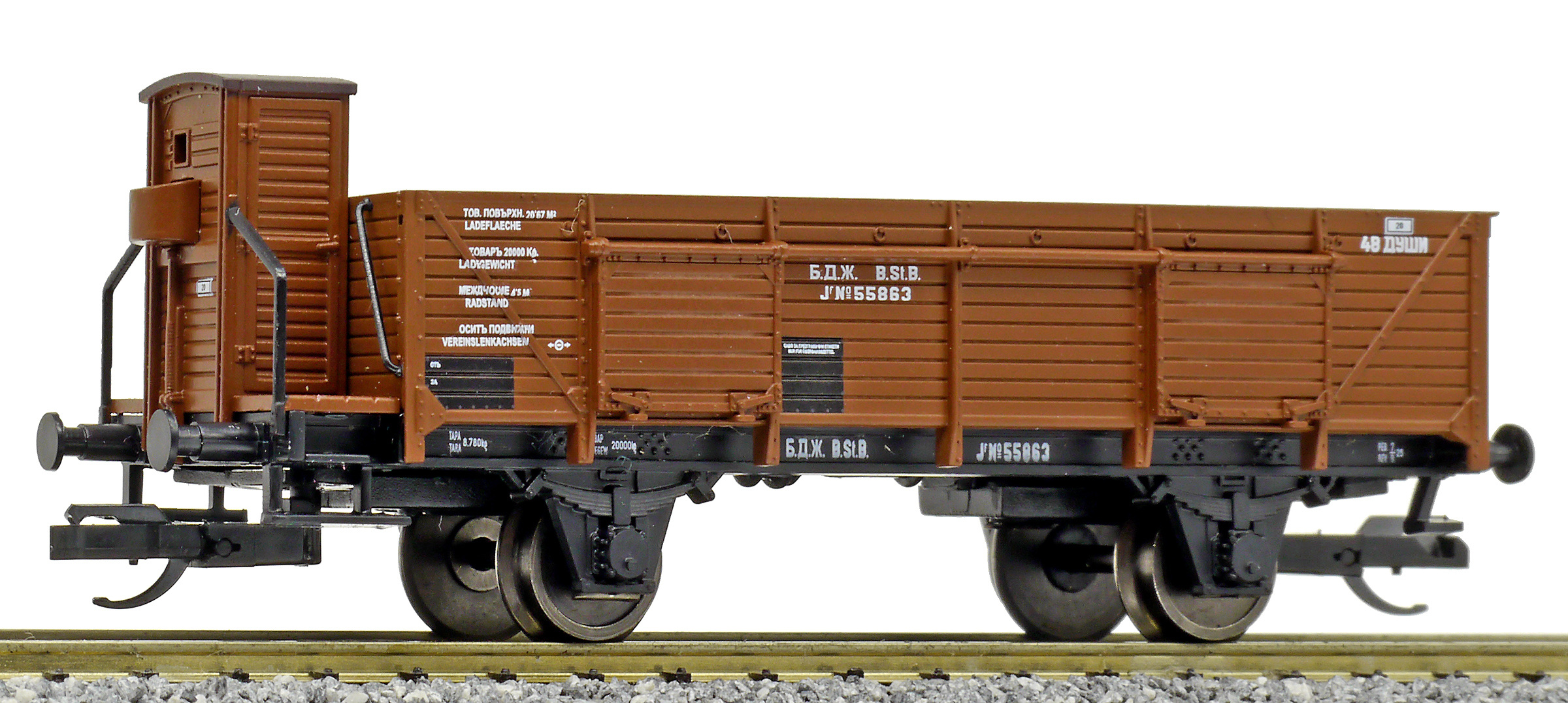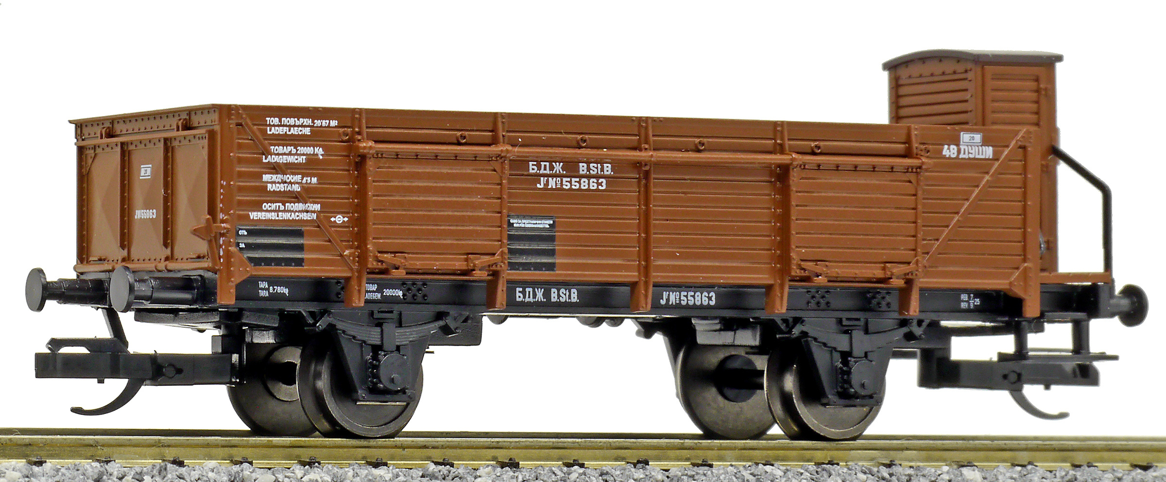 Popis   otevřený nákladní vůz červenohnědý s brzdařskou budkou
