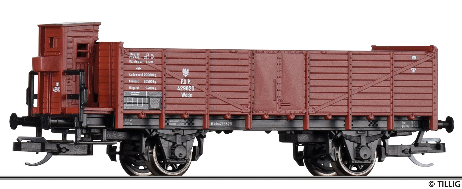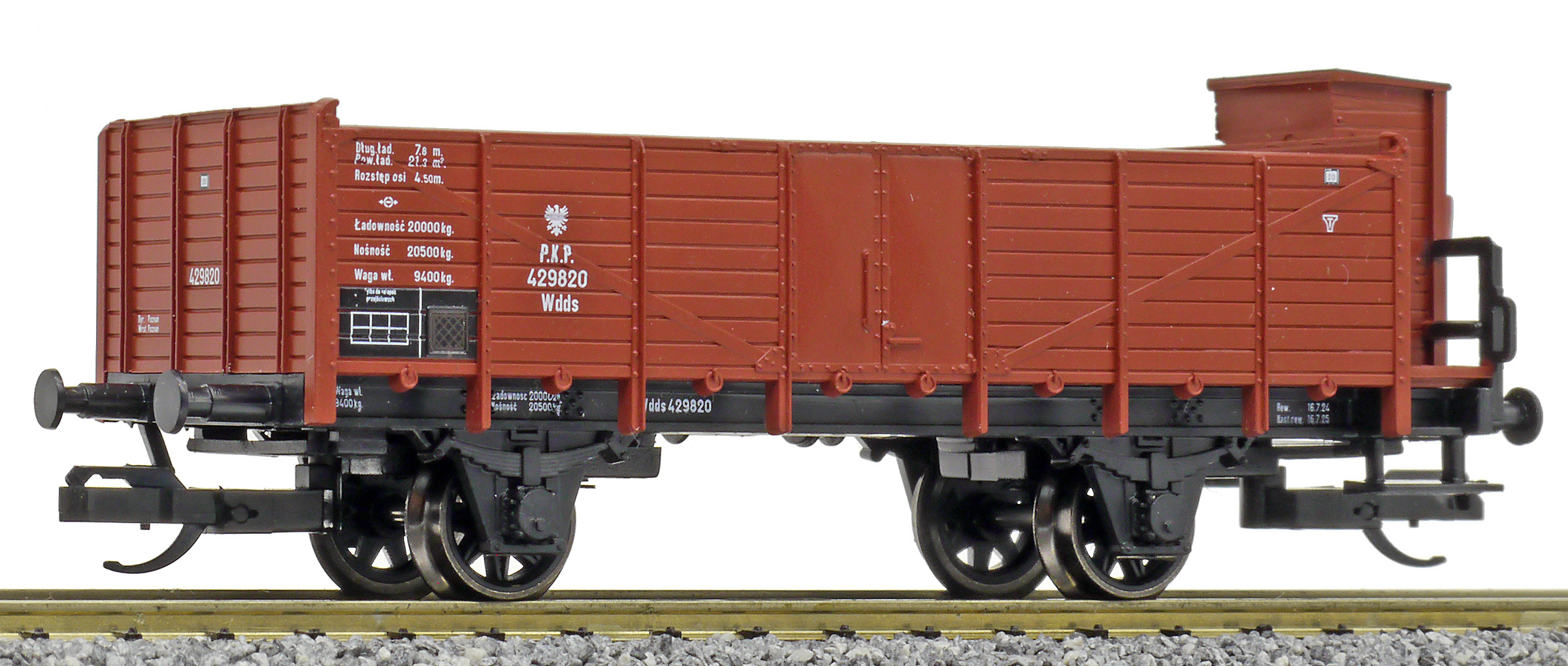 | otevřený nákladní vůz červenohnědý s brzdařskou budkou |