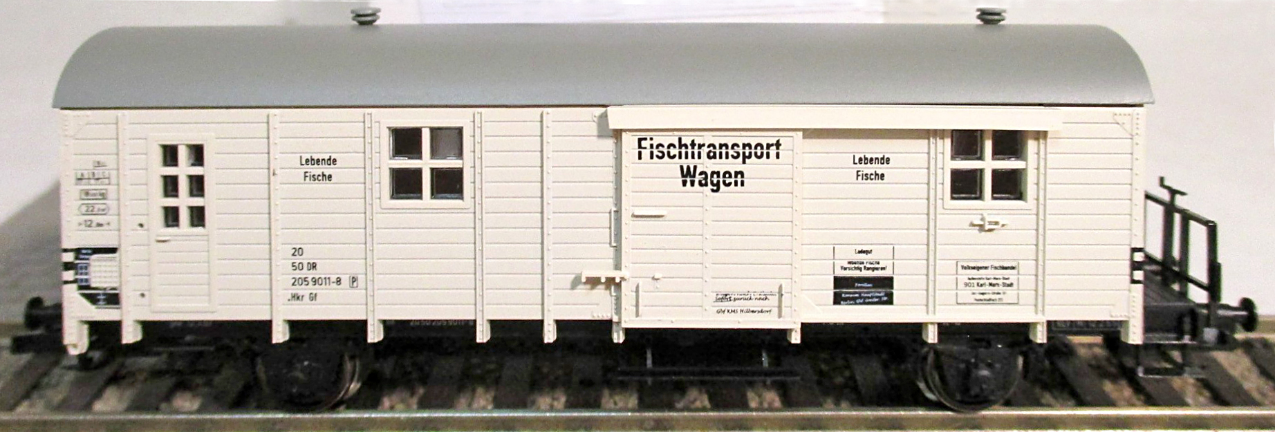 | chladící nákladní vůz béžový na přepravu ryb „Kraftwerksfische-III“ |