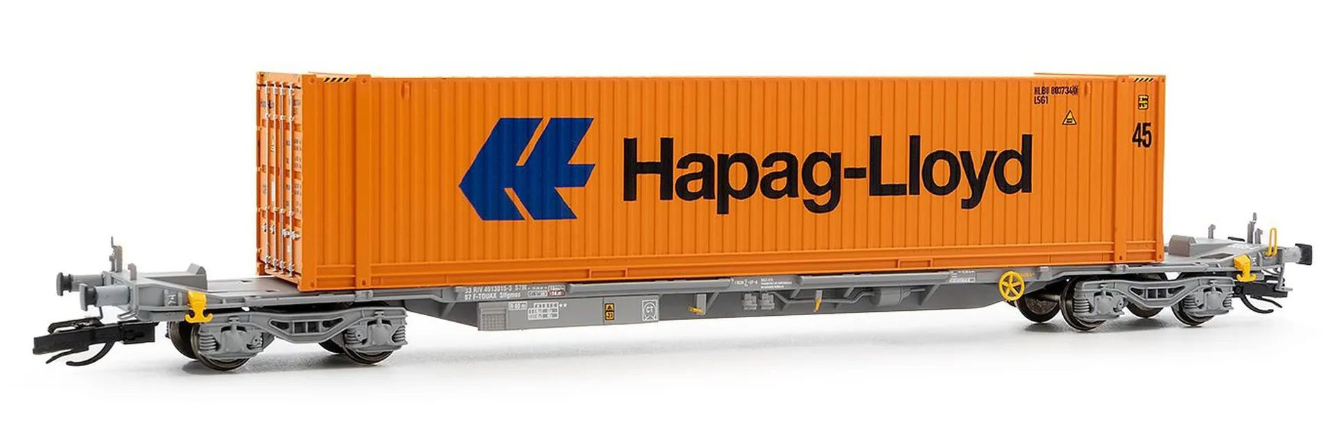 | kontejnerový vůz „IFA” šedý ložený 45' kontejnerem „Hapag-Lloyd” |