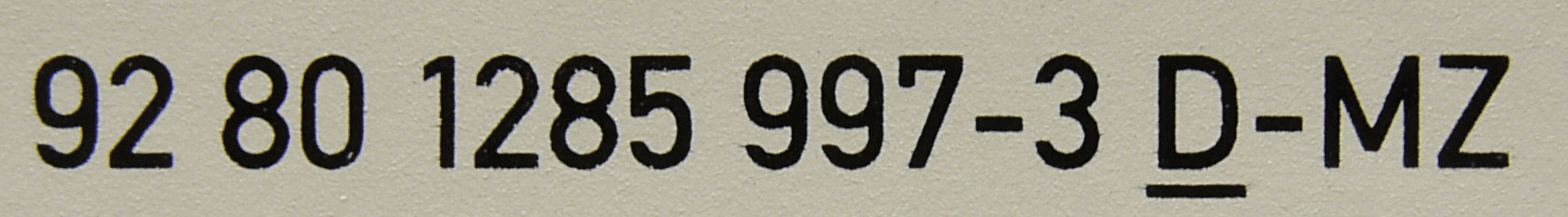 | • 92 80 1285 997-3 | → | pořadové číslo |