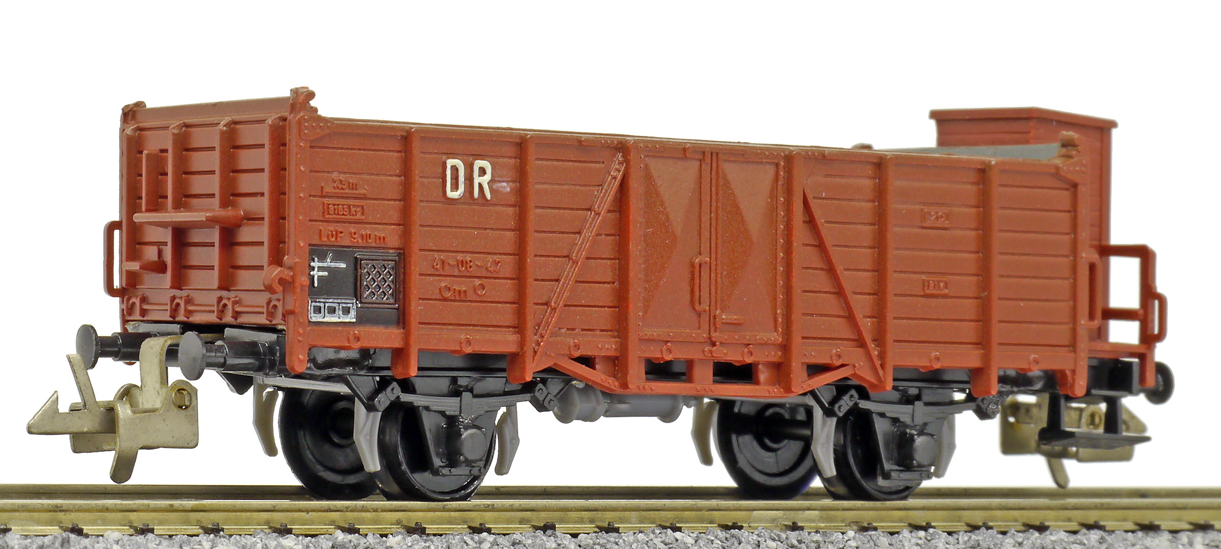 otevřený nákladní vůz červenohnědý s brzdařskou budkou