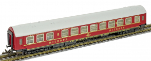| jídelní vůz červený s šedou střechou jídelní „MITROPA“ |