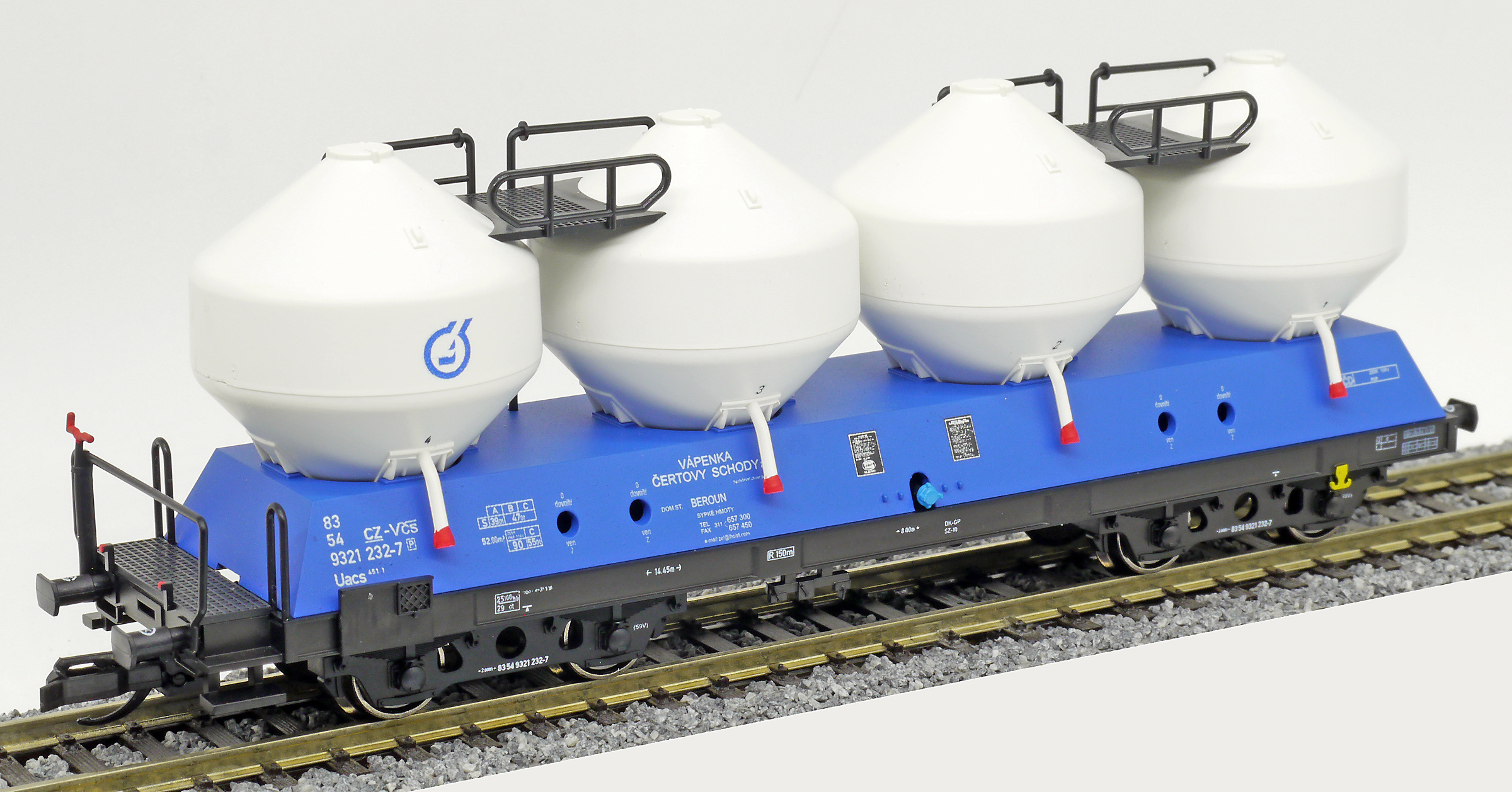 | nákladní samovýsypný vůz modrý s bílými nádobami „Vápenka Čertovy schody“ |