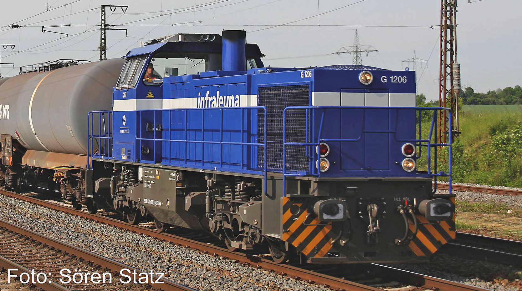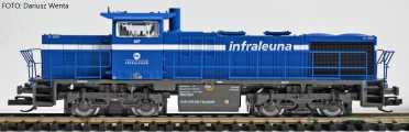 | dieselová lokomotiva modrá s bílým proužkem „infraleuna“ |