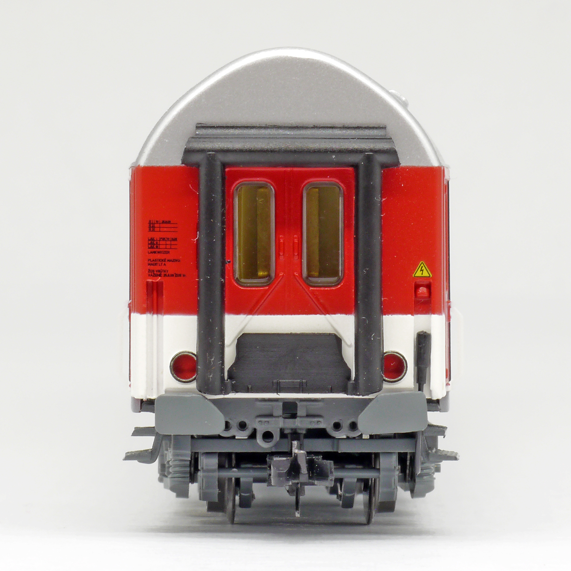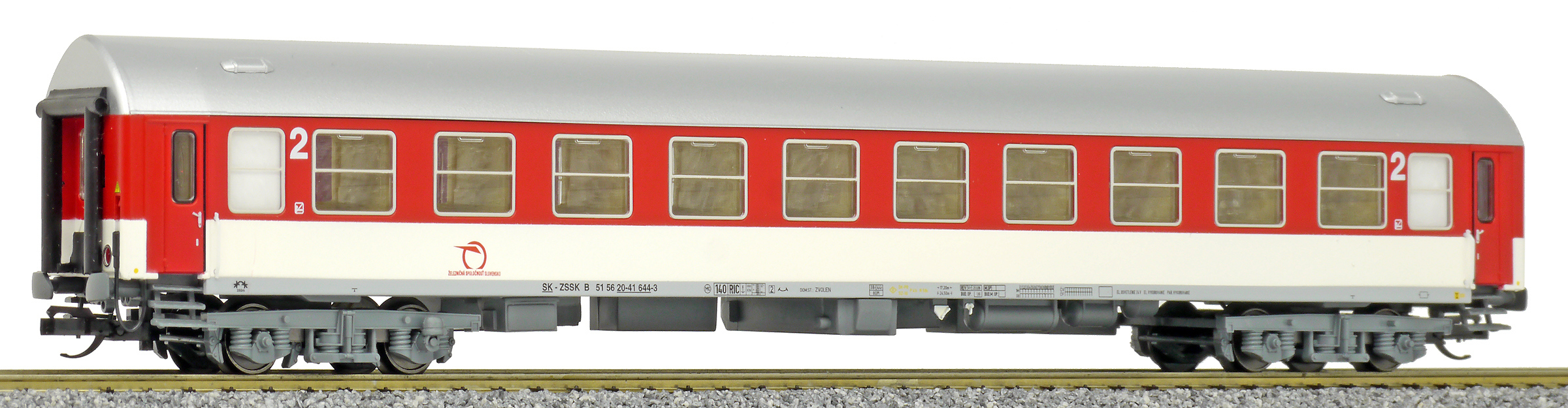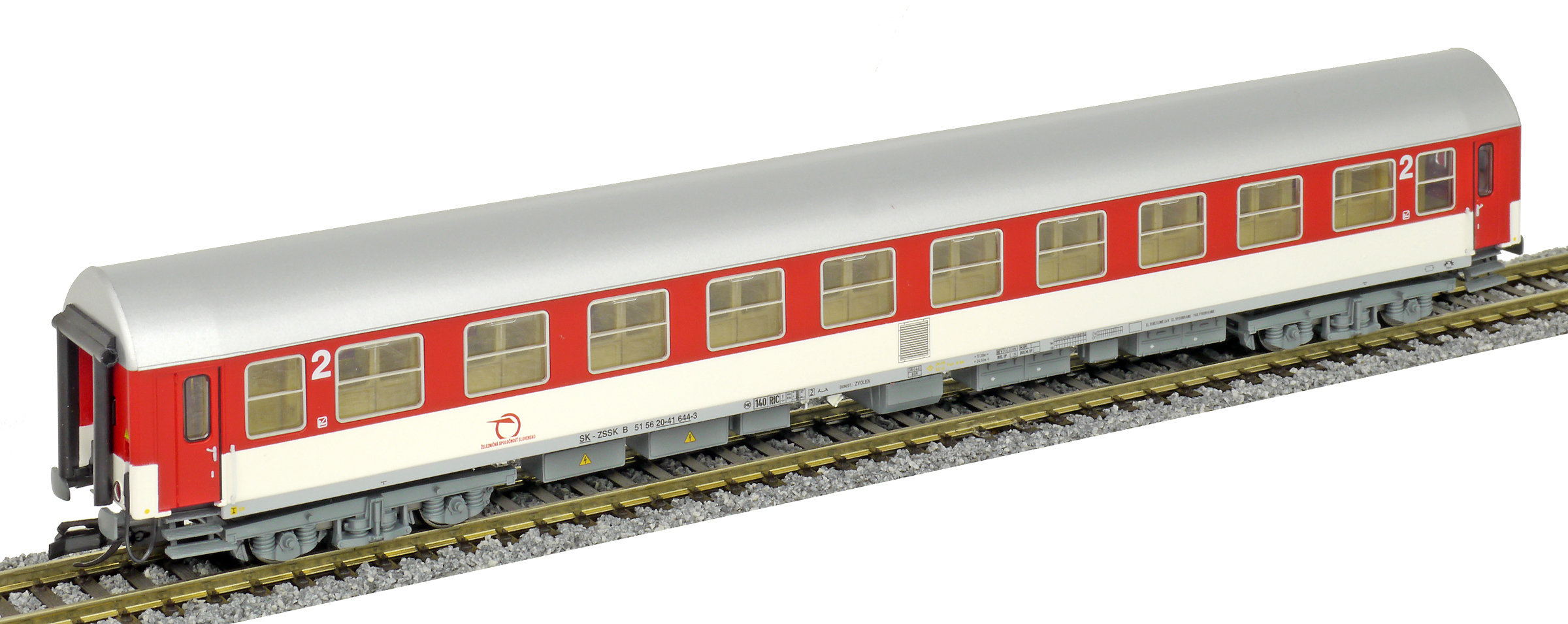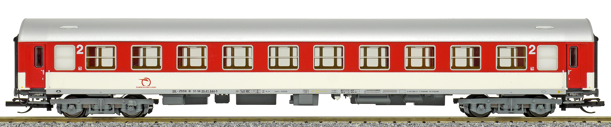 | rychlíkový vůz červený-bílý s šedou střechou 2. tř. |