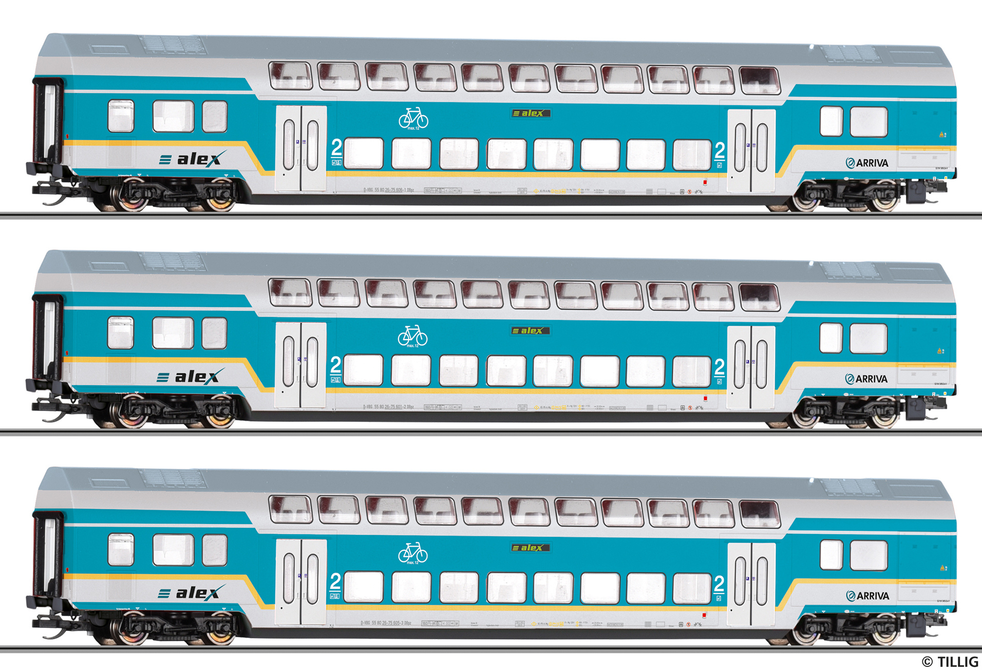 | set tří patrových vozů v barevném schematu „alex“, SET 1 |