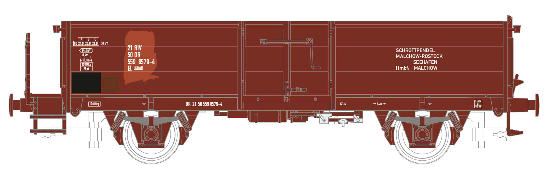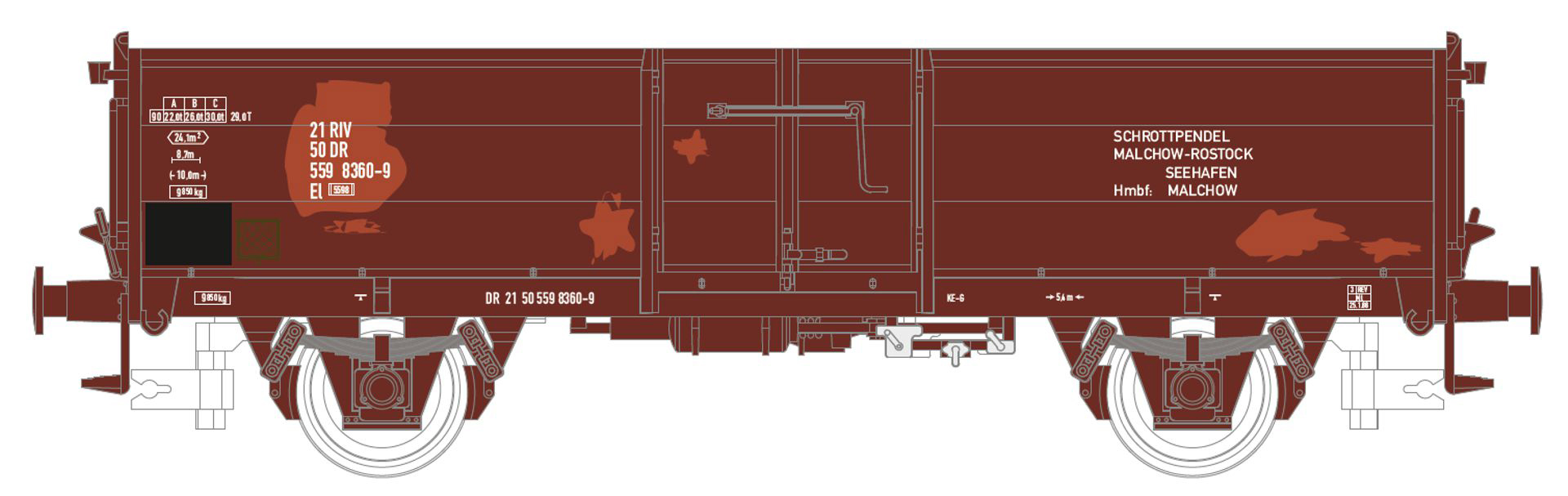 | set tří otevřených nákladních vozů s opravami laku ložené šrotem „Schrottpendel Malchow–Rostock“ |