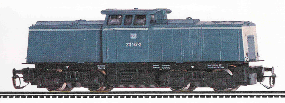 | dieselová lokomotiva modrá s bílým čelem, černý rám a pojezd |