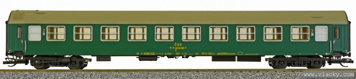 | rychlíkový vůz zelený s šedou střechou 2. tř. |
