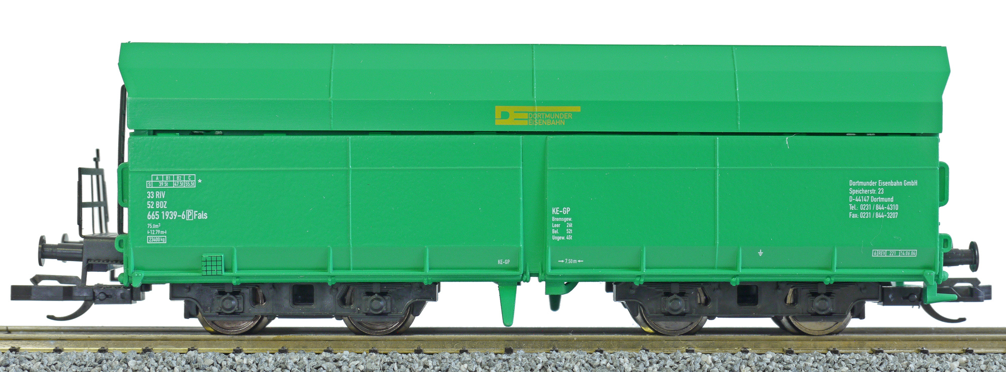 | nákladní samovýsypný vůz zelený „Dortmunder Eisenbahn“ |