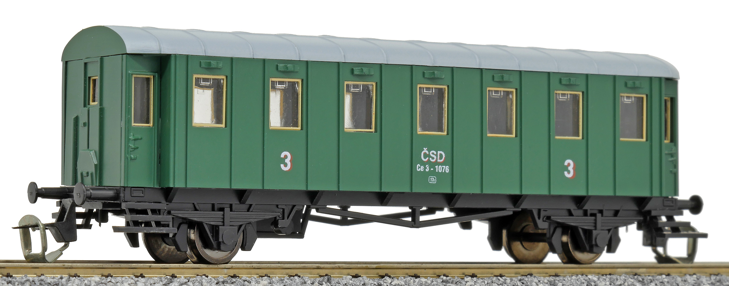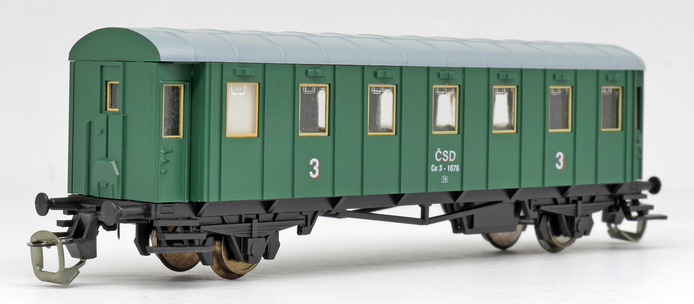 | osobní vůz zelený s šedou střechou 3. tř. |