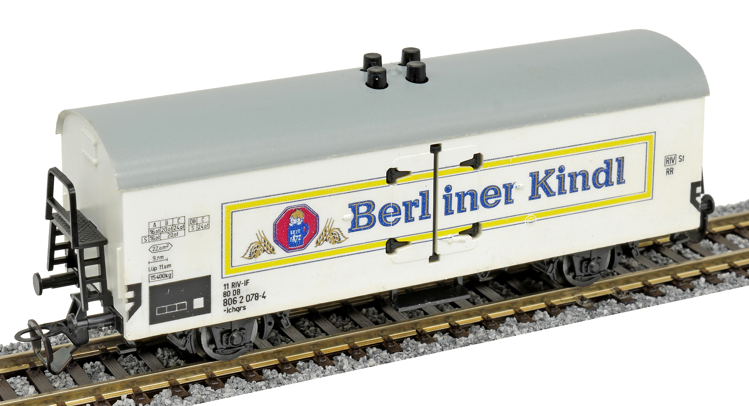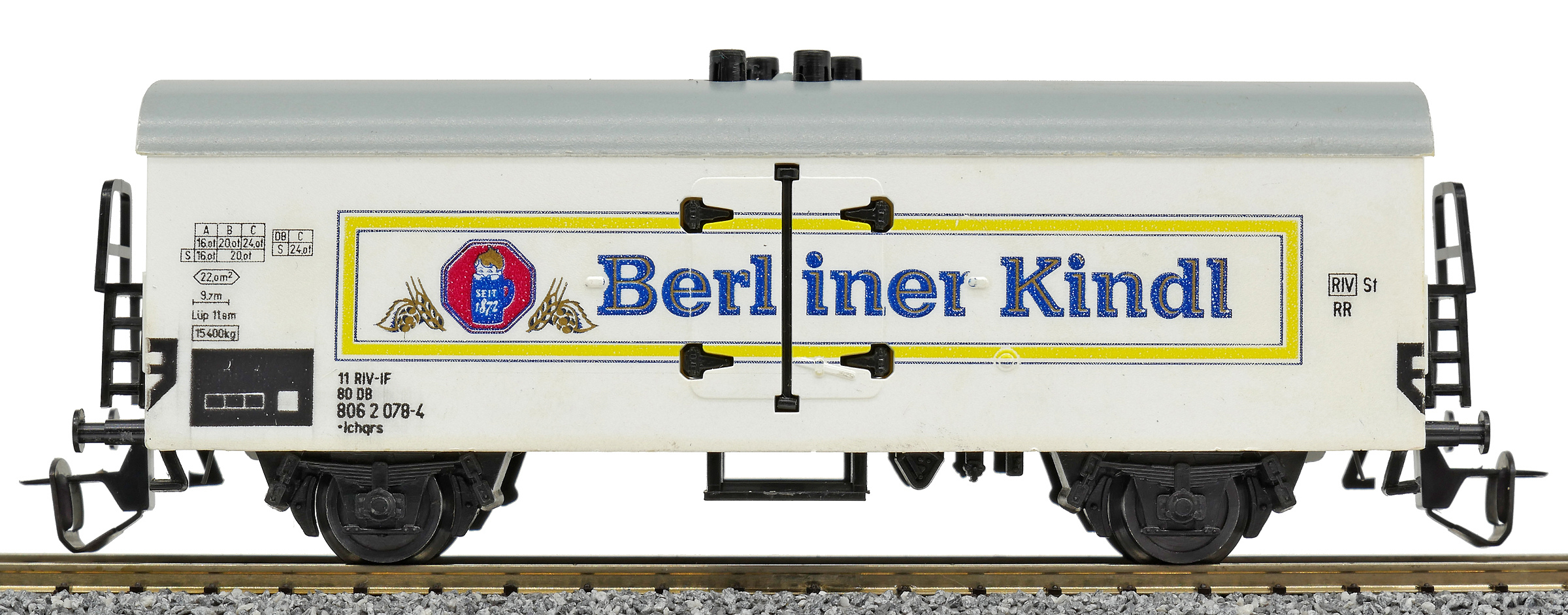 | nákladní chladící vůz bílý s šedou střechou „Berliner Kindl“ |