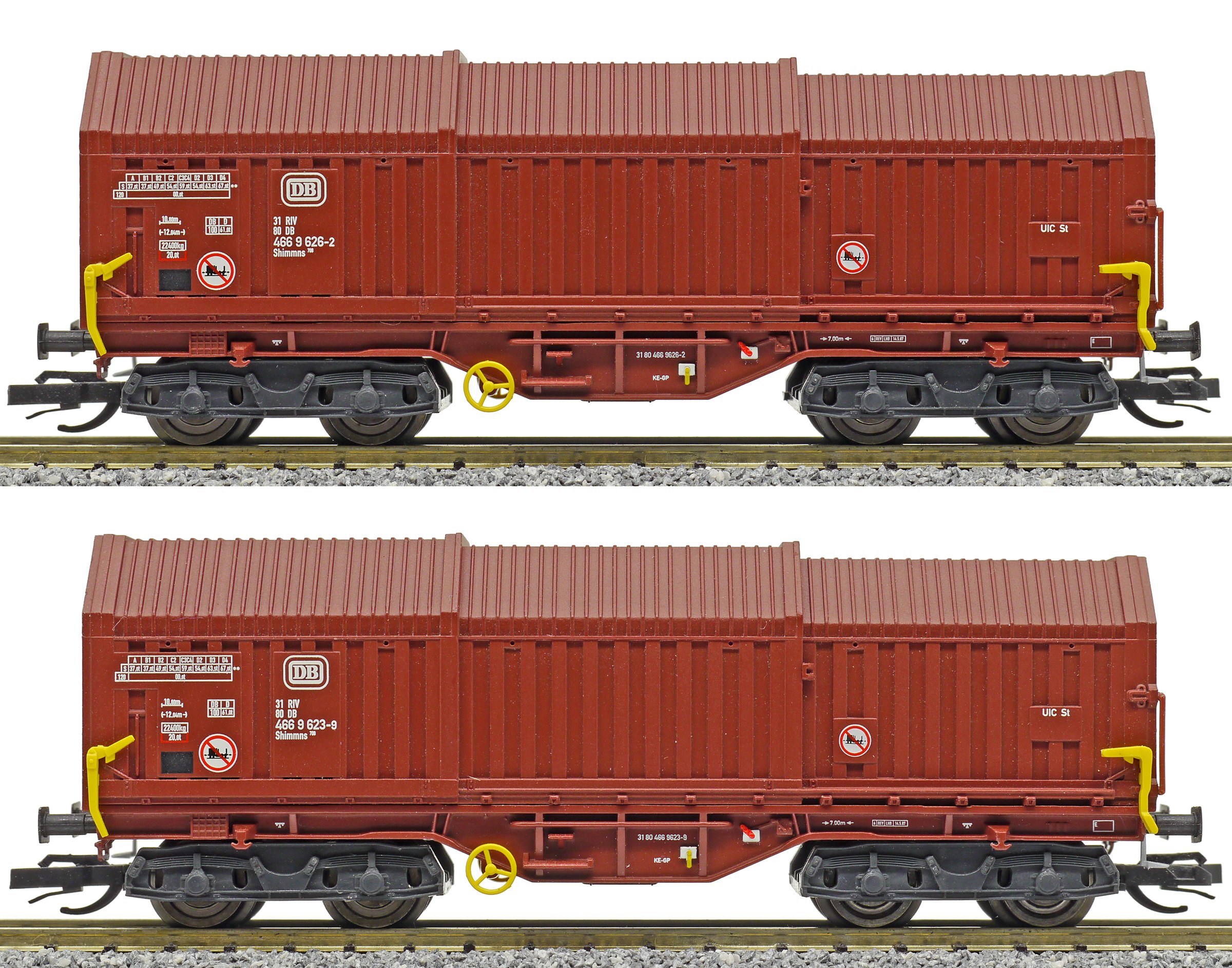| set dvou hnědých vozů s posuvným teleskopickým zakrytím |
