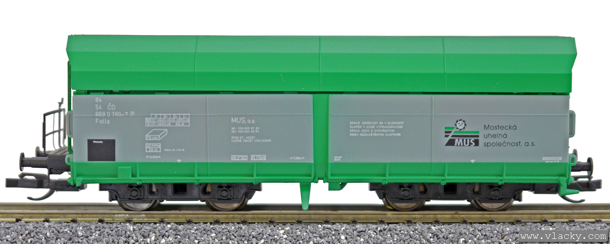 | nákladní samovýsypný vůz zelený s šedými klapkami „MUS“ |