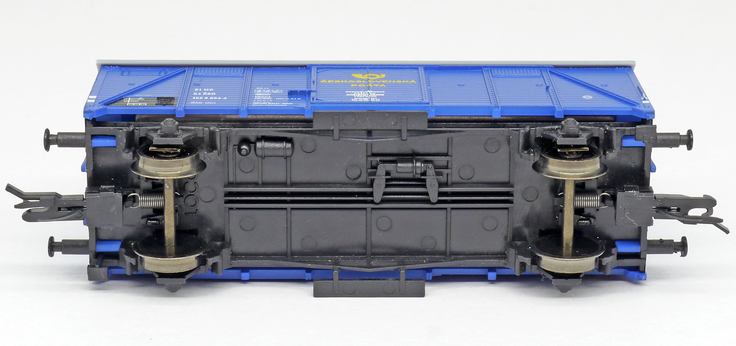 | krytý nákladní vůz modrý s šedou střechou „Československá pošta - Praha” |