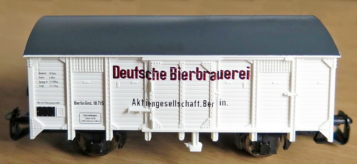 | krytý nákladní vůz krémový s hnědou střechou „Deutsche Bierbrauerei“ |