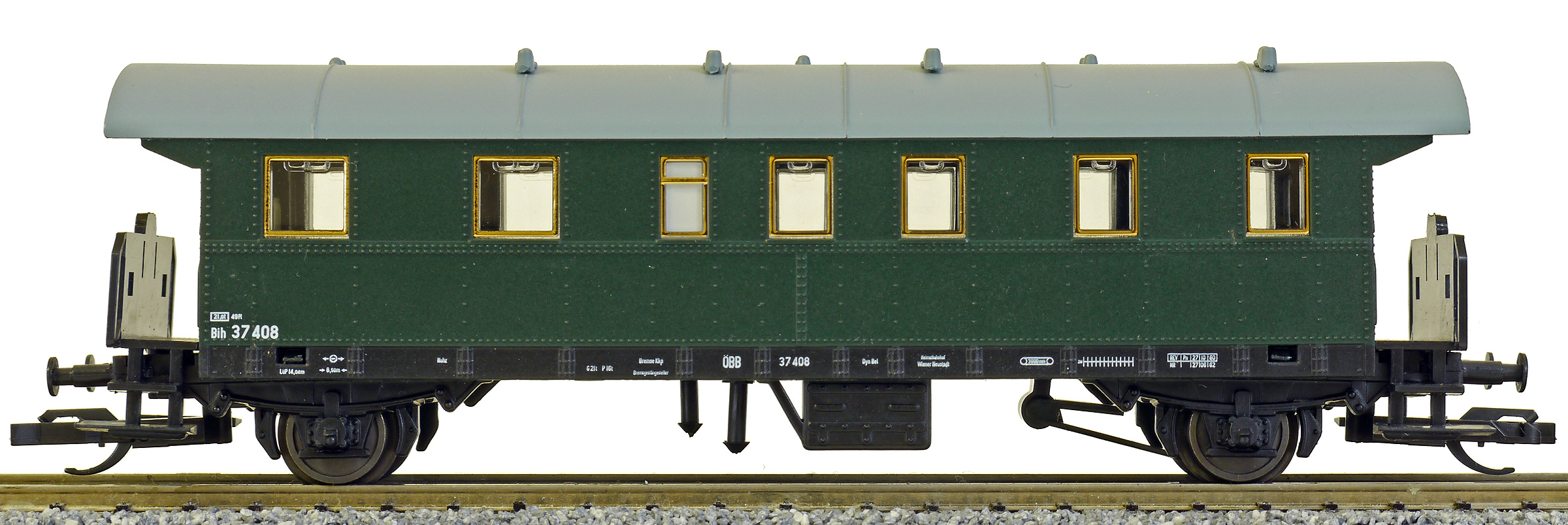 | osobní vůz zelený s šedou střechou 2. tř. |
