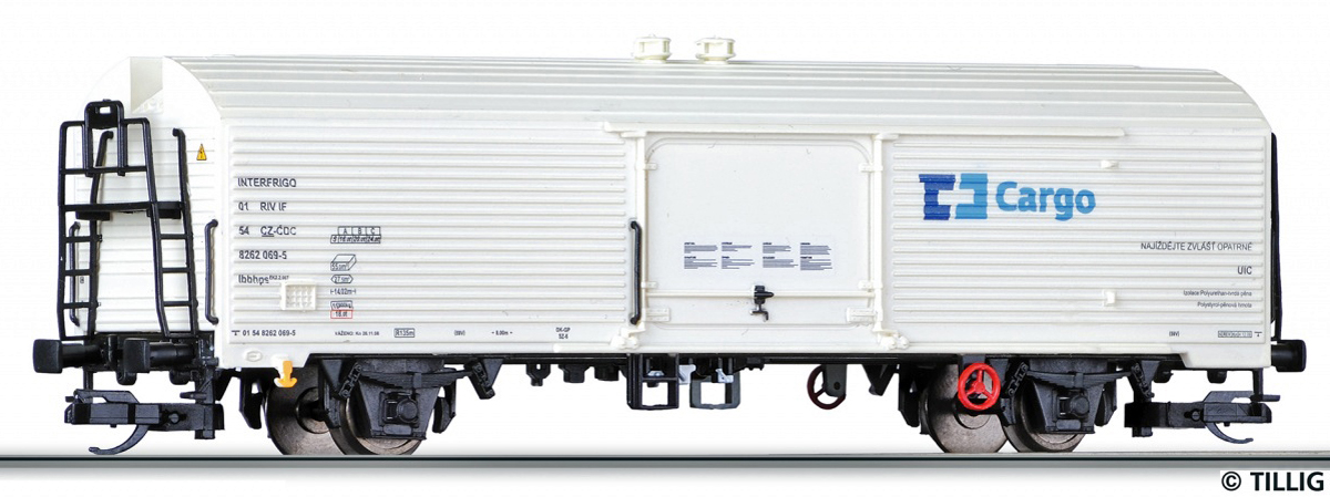 | nákladní chladící vůz světle krémový s logem „ČD Cargo“ |
