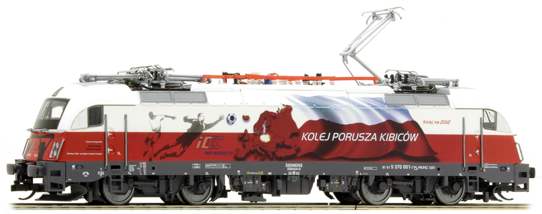 | elektrická lokomotiva ve fotbalovém barevném schematu „Polen“ |