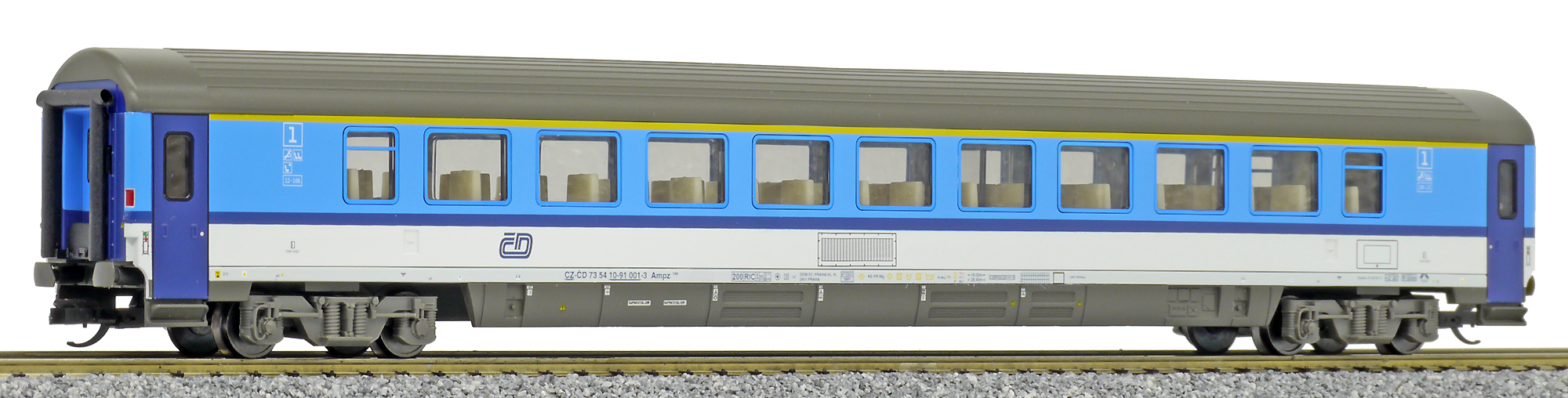 Popis   rychlíkový vůz v barevném schematu „Najbrt“ 1. tř.