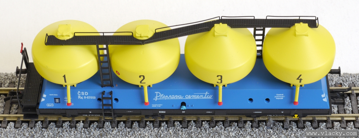 | nákladní samovýsypný vůz modrý se žlutými nádobami „Přeprava cementu“ |