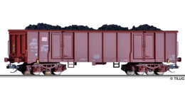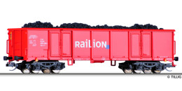 | vysokostěnný nákladní vůz červený „Railion” s nákladem uhlí |