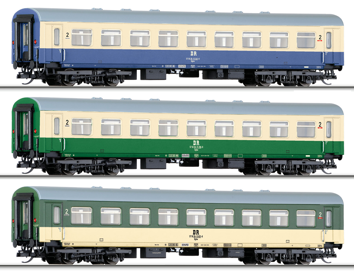 | set tří osobních vozů 2 .tř. v testovacím nátěru |