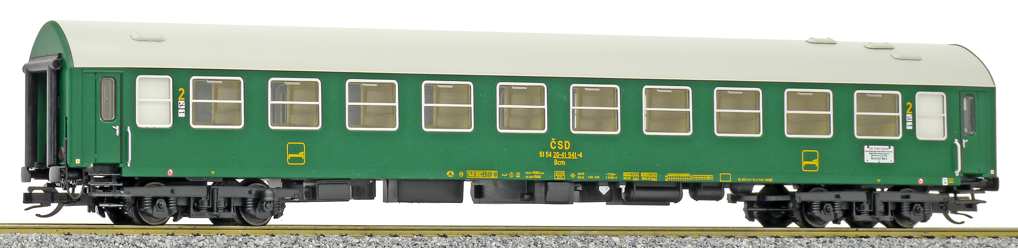 Popis   lůžkový vůz zelený s šedou střechou 2. tř.