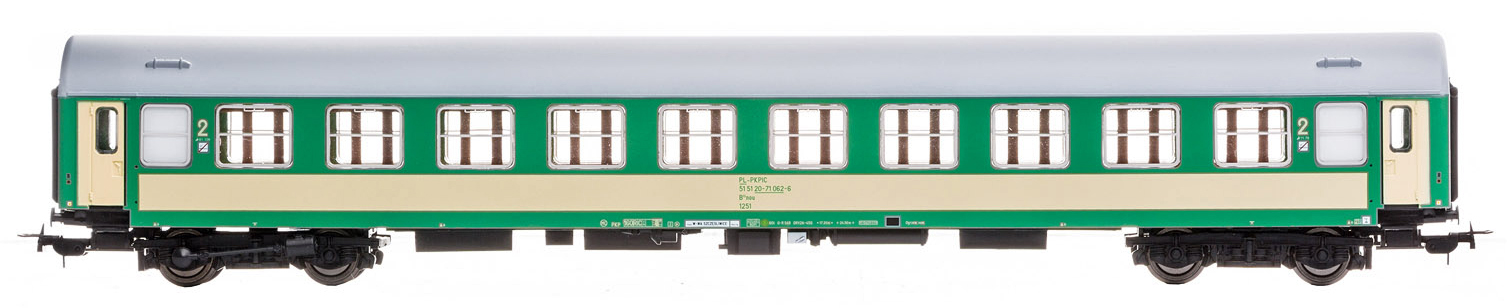 | rychlíkový vůz zelený-slonová kost s šedou střechou 2. tř. |