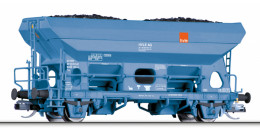 | samovýsypný vůz modrý s nákladem uhlí |