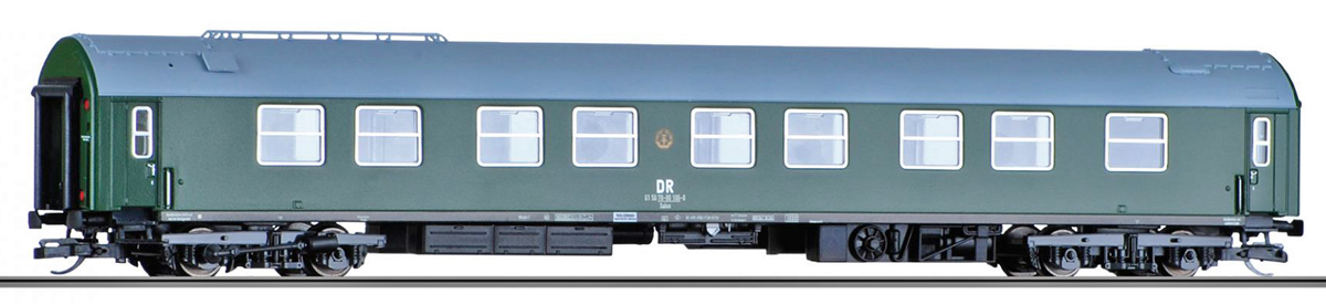 | lůžkový vůz s osmi oddíly zelený s šedou střechou |